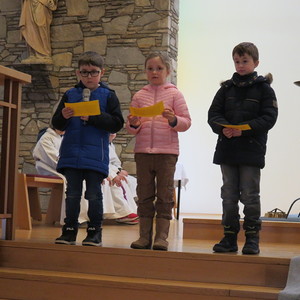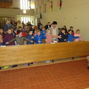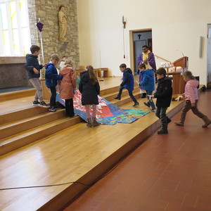 Vor Beginn der Osterferien feierten die katholischen Schüler aller Klassen gemeinsam mit P. Jomon, den Lehrkräften und einigen Eltern und Großeltern, einen von Religionslehrerin Rebecca Amring Genave gemeinsam mit den Kindern gestalteten Gottesdienst.