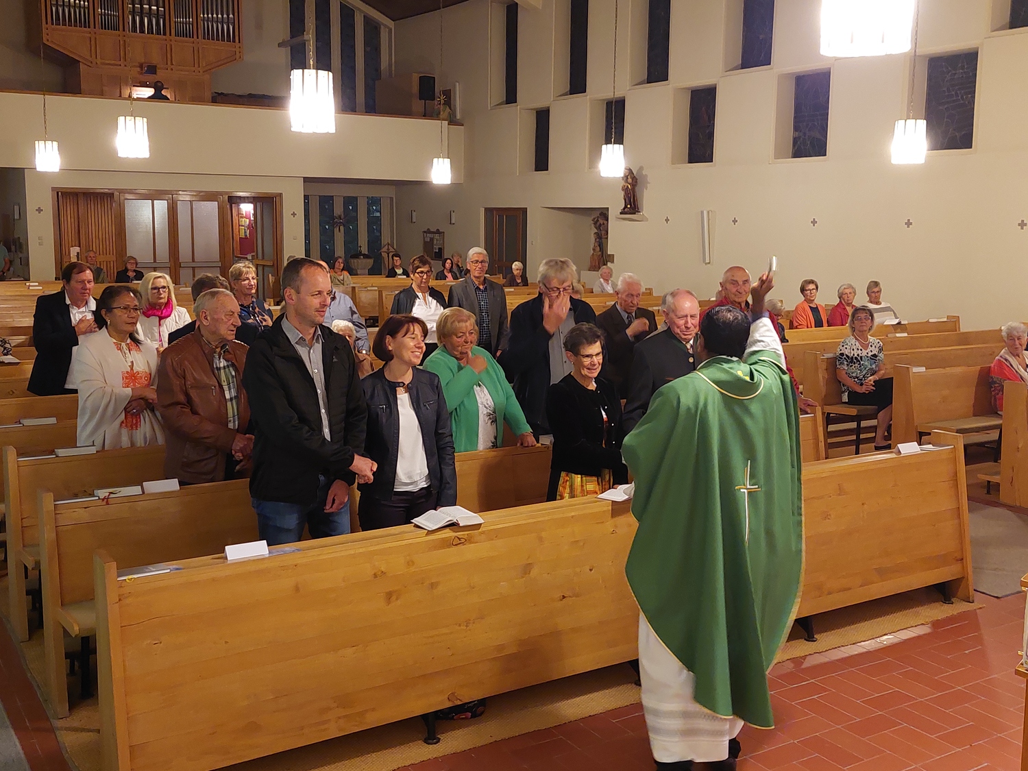 9 Ehepaare folgten der Einladung der Pfarre um ihr Ehejubiläum (25, 50, 60 Jahre) dankbar im Zuge eines Gottesdienstes zu feiern. Nach einem Segen durch P. Jomon trafen sich die Jubilare zu einer kleinen Agape im Pfarrheim.