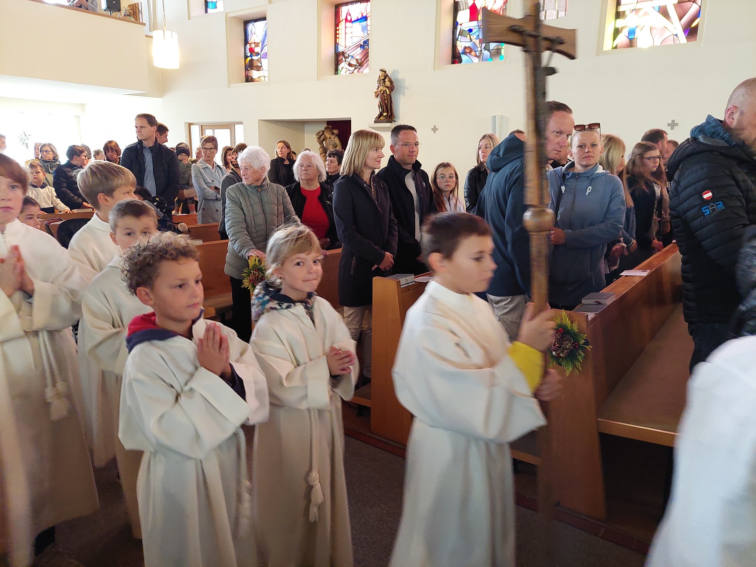 An diesem Tag dankte die Pfarre nicht nur für die Erntegaben, sondern ein großes Dankeschön erging von P. Jomon und den Messbesuchern an fünf Kinder, die sich neu für den Ministrantendienst gemeldet haben.
