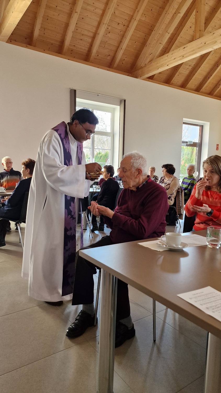 Der Einladung zur Alten- und Krankenmesse, bei der Pfarrer Jomon auch die Krankensalbung spendete, sind viele Pfarrangehörige gefolgt. Im Anschluss blieb, bei Kaffee und Kuchen, noch Zeit für gesellige Gespräche.