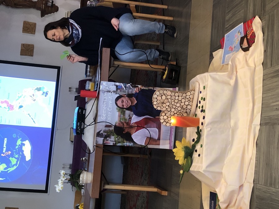 Beginnend mit einer Infoveranstaltung zum Familienfasttag wurde den TeilnehmerInnen die CARE-Arbeit nahegebracht. Waltraud Hofer spannte den Bogen von den Philippinnen bis zu uns. Bei uns in Österreich arbeiten viele philippinische Frauen in Krankenhäuser und in der Altenpflege Auf den Philippinen ist Arbeitsmigration besonders weit verbreitet. Die Aktion „Familienfasttag“ der Katholischen Frauenbewegung unterstützt die Arbeit des Mindanao Migrations Center und ist damit Teil dieses solidarischen Netzwerks.