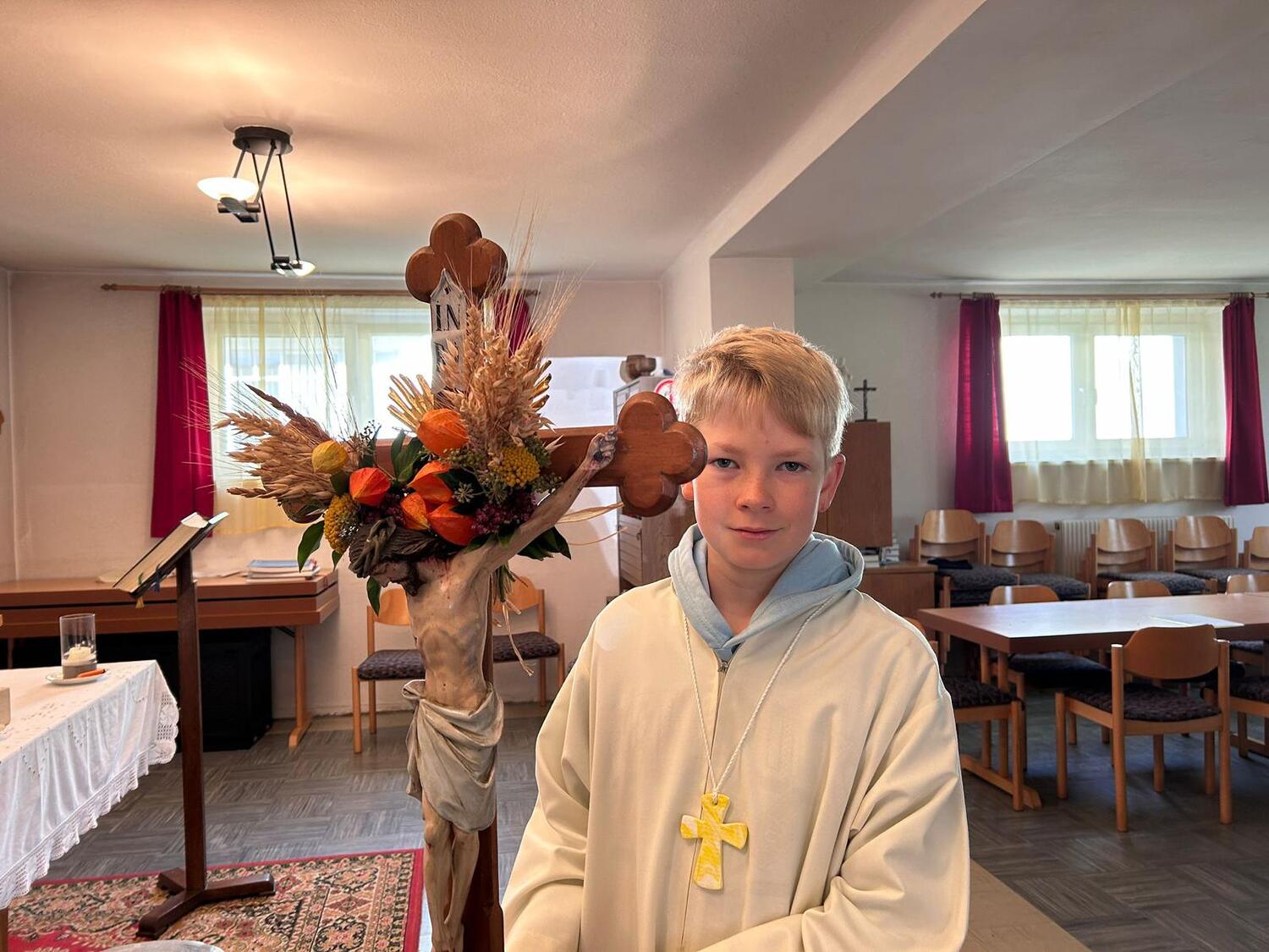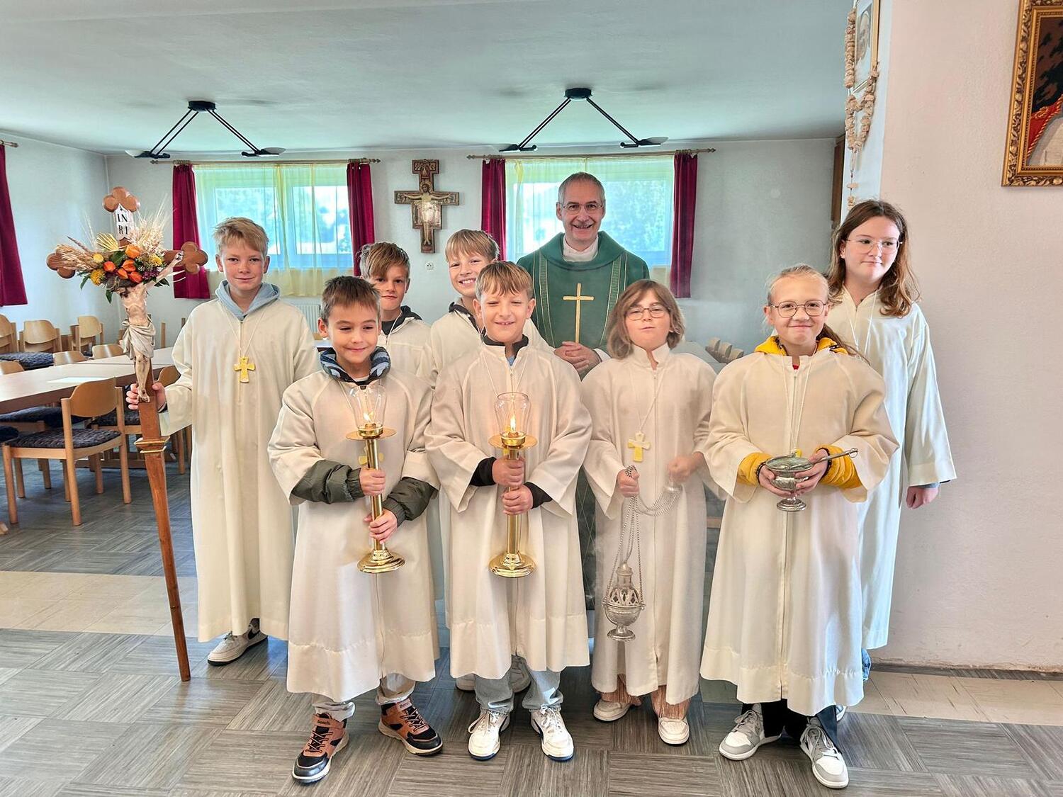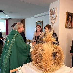 Am Sonntag, dem 29. September trafen sich die Gläubigen der Pfarre Kobersdorf beim Pfarrhof, wo die Erntekrone gesegnet wurde. In einer Prozession marschierte dann Groß und Klein zur Pfarrkirche, wo mit Generalvikar Michael Wüger ein wunderschöner Festgottesdienst gefeiert wurde. Besonders würdevoll haben die Kinder mit verschiedenen Texten und Liedern die Messe mitgestaltet.