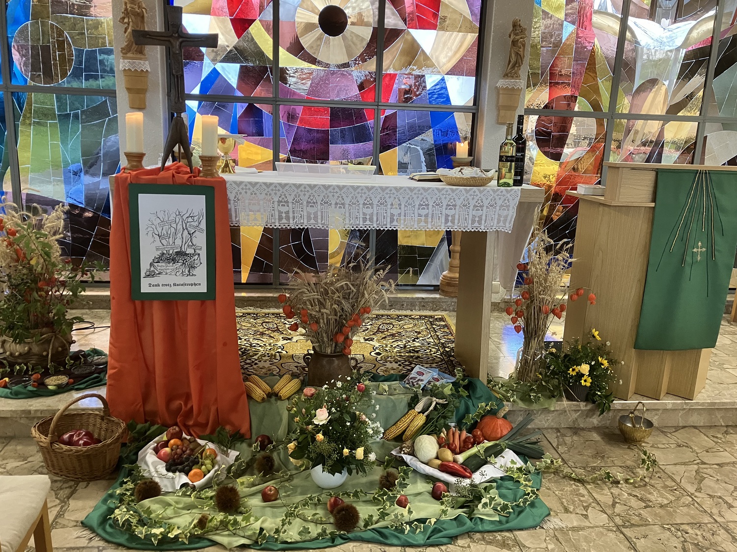 Erntedank ruft uns in Erinnerung, dass wir Teil der Schöpfung Gottes sind und dass dieser seine Schöpfung uns anvertraut hat. Zur Feier und aus Dank werden die Kirchen mit Früchten, Gemüse, Blumen und Brot geschmückt.