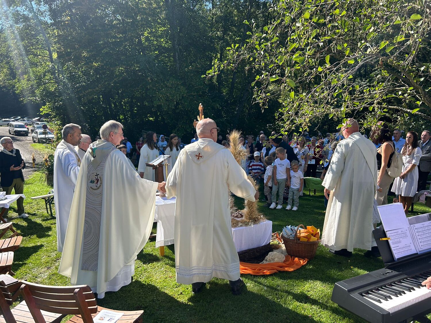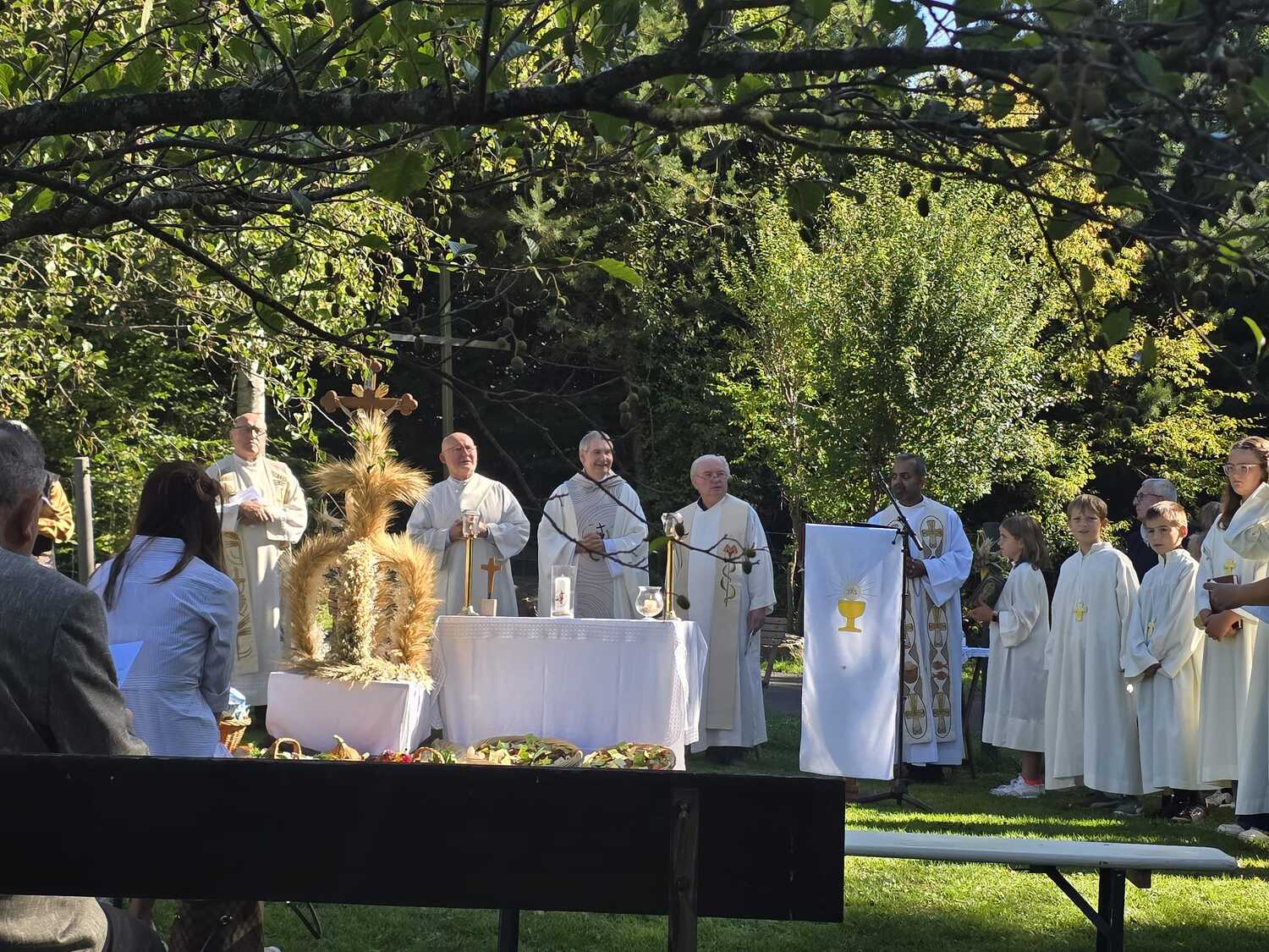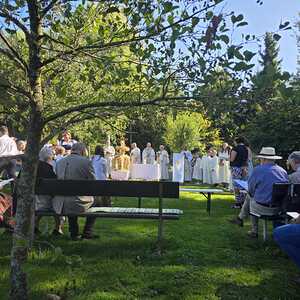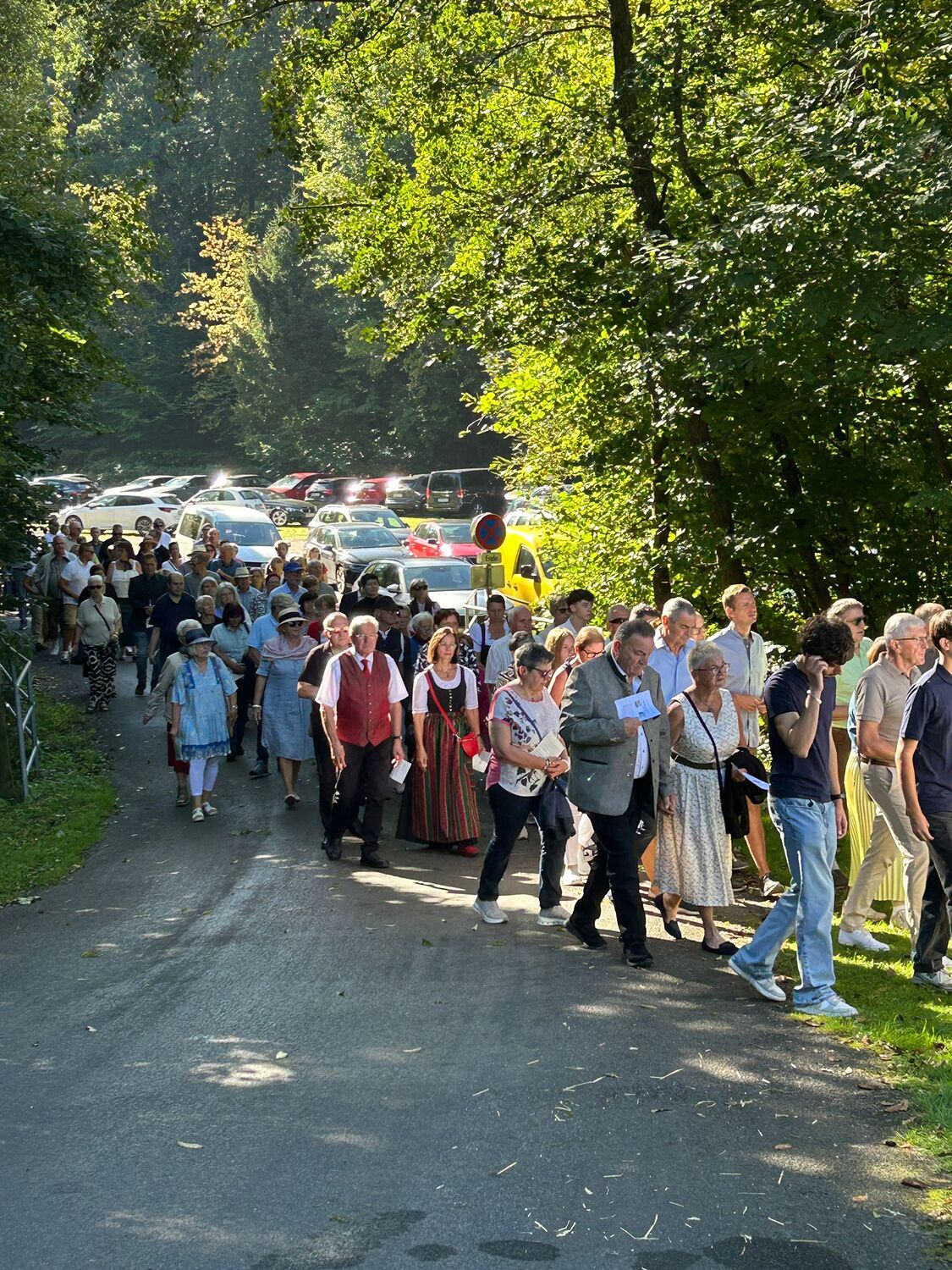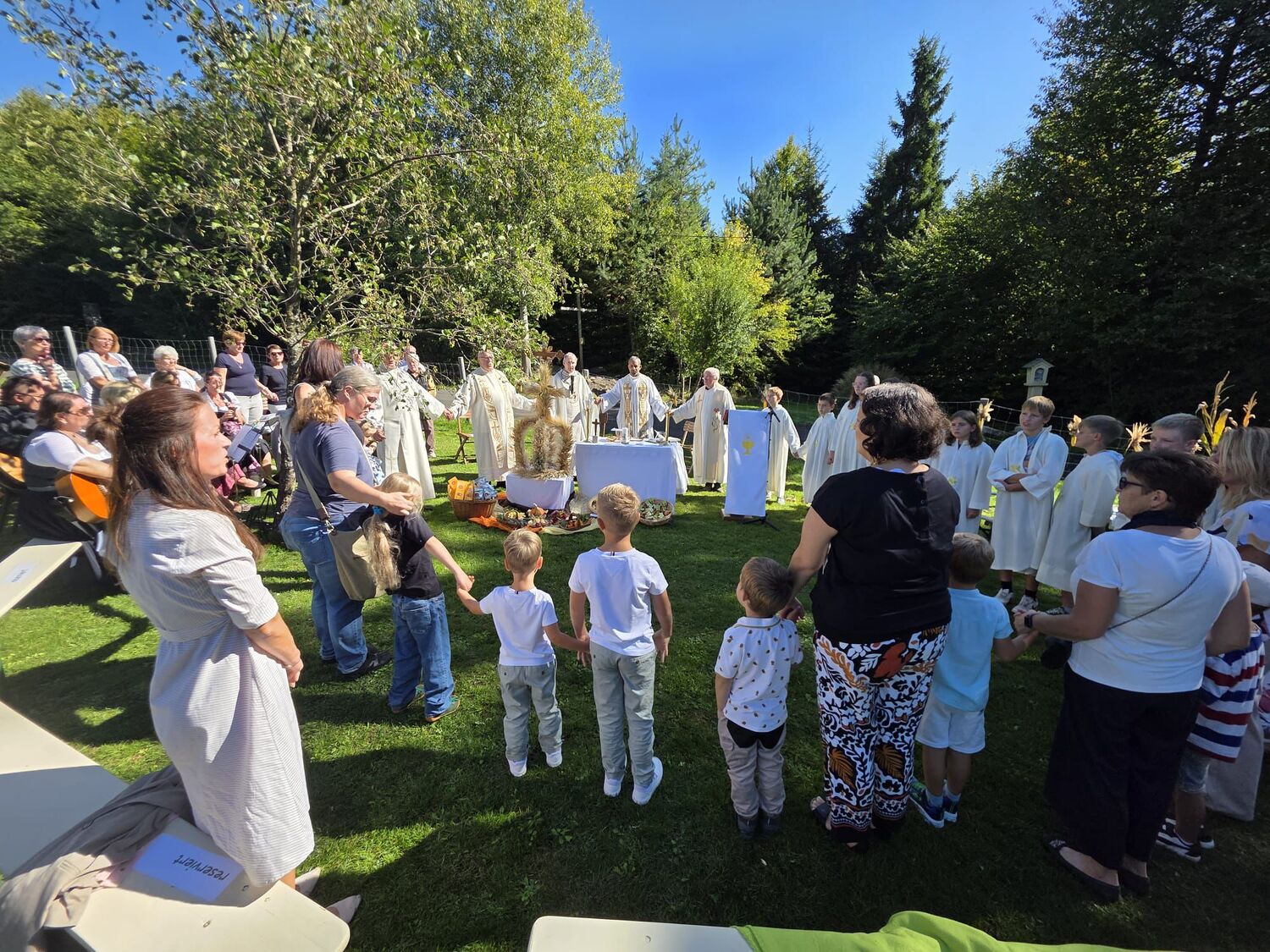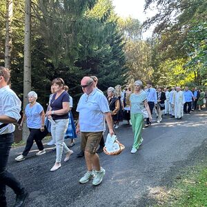 Dieses besondere Jubiläum feierten wir heuer im Rahmen des Erntedankfestes – selbstverständlich direkt am Kreuzweg. Der feierliche Festzug wurde von der Musikkapelle Kobersdorf musikalisch würdevoll angeführt. Der gemeinsame Weg begann bei der 13. Station und führte uns entlang des Weges bis zur 15. Station, wo die Heilige Messe unter freiem Himmel gefeiert wurde.