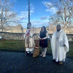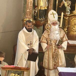 Feierlich wurde der Nikolaus von Pfarrer Shinto begrüßt. In einer kindgerechten Gesprächsrunde stellte der Pfarrer dem Nikolaus viele Fragen, die dieser den zahlreichen anwesenden Kindern verständlich und anschaulich beantwortete. Gemeinsam erklärten sie die Bedeutung der Mitra, des weißen Gewandes, des Bischofsstabes, des Ringes und des Kreuzes – Symbole, die an das Wirken und die Güte des hl. Nikolaus erinnern.
