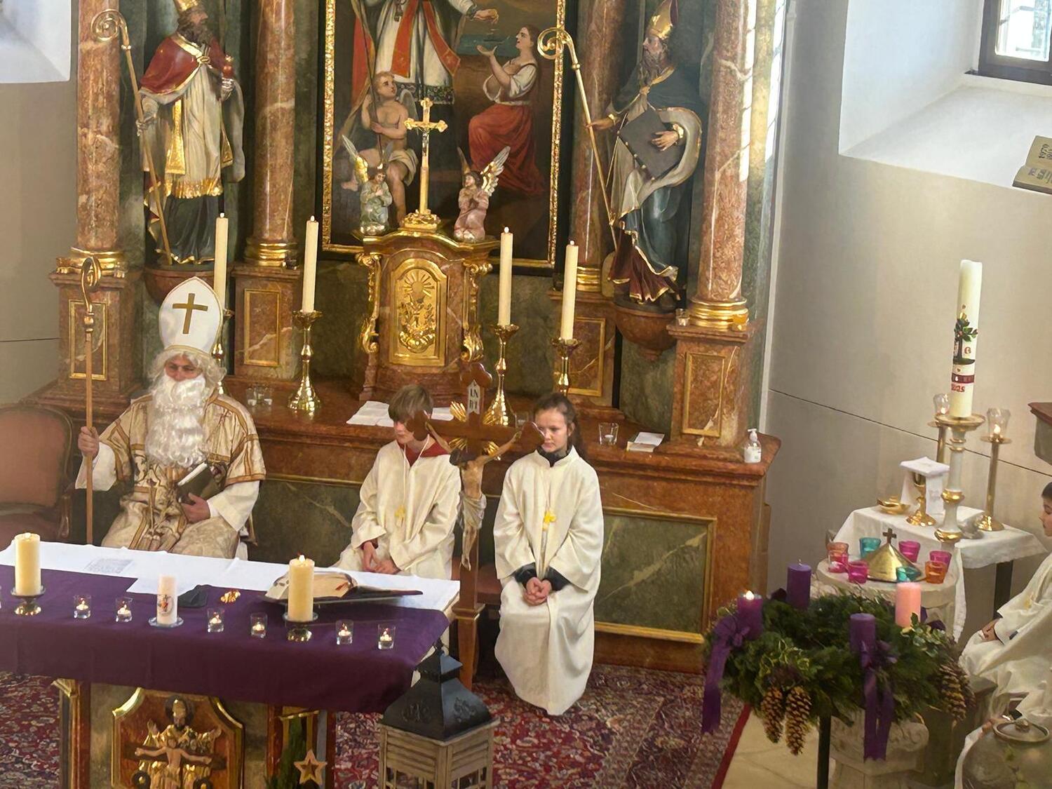 Am 2. Adventsonntag feierte die Pfarre Kobersdorf im Rahmen eines stimmungsvollen Familiengottesdienstes das Patrozinumsfest des heiligen Nikolaus. Für große Freude – besonders bei den Kindern – sorgte eine Überraschung: Der Nikolaus zog gemeinsam mit dem Pfarrer und den Ministrantinnen und Ministranten in die Kirche ein.