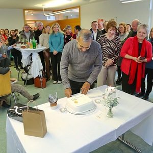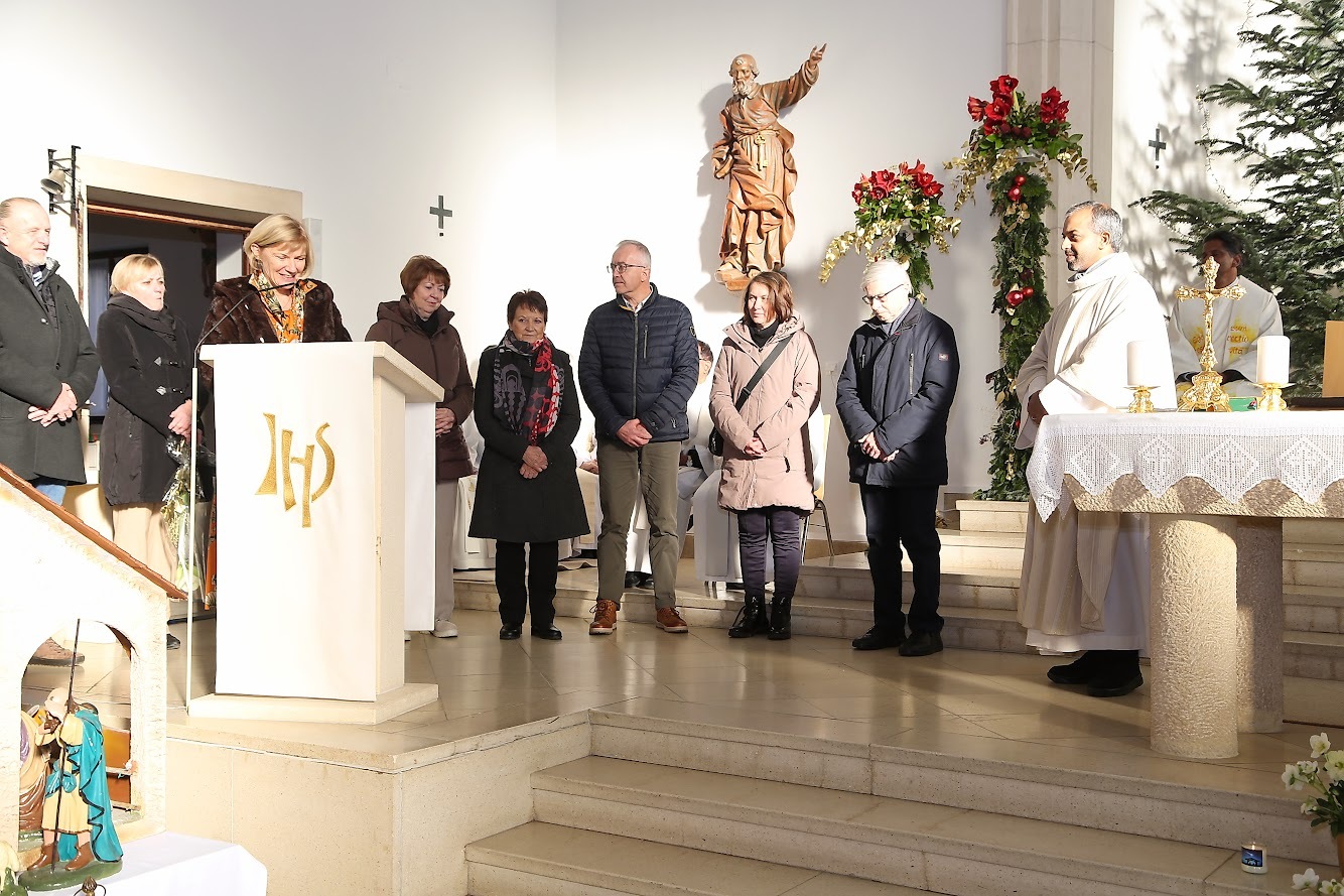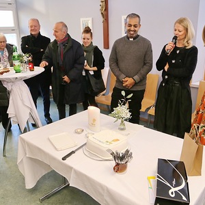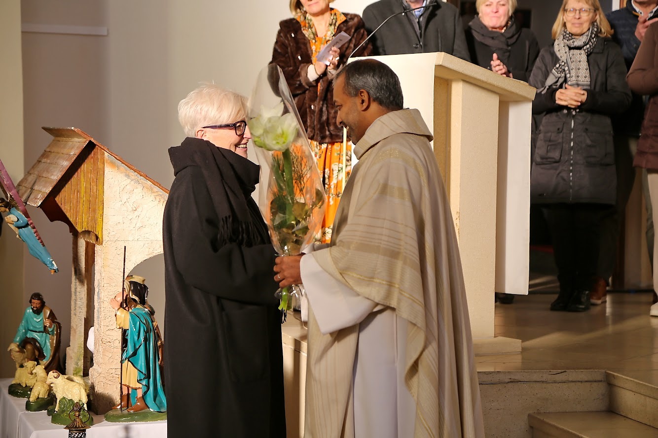 Vor dem Schlusssegen richtete Kuratorin Christa Reiner im Namen der Pfarrgemeinderäte sehr persönliche und berührende Worte an den Jubilar. Dabei griff sie auch seinen Primizspruch „Rede, Herr, dein Diener hört“ auf, der sein priesterliches Wirken bis heute prägt. Ebenso wandte sich ein Priesterkollege mit herzlichen Worten an Pfarrer Shinto und ließ dabei gemeinsame Wegstationen und tiefe Verbundenheit spürbar werden.
