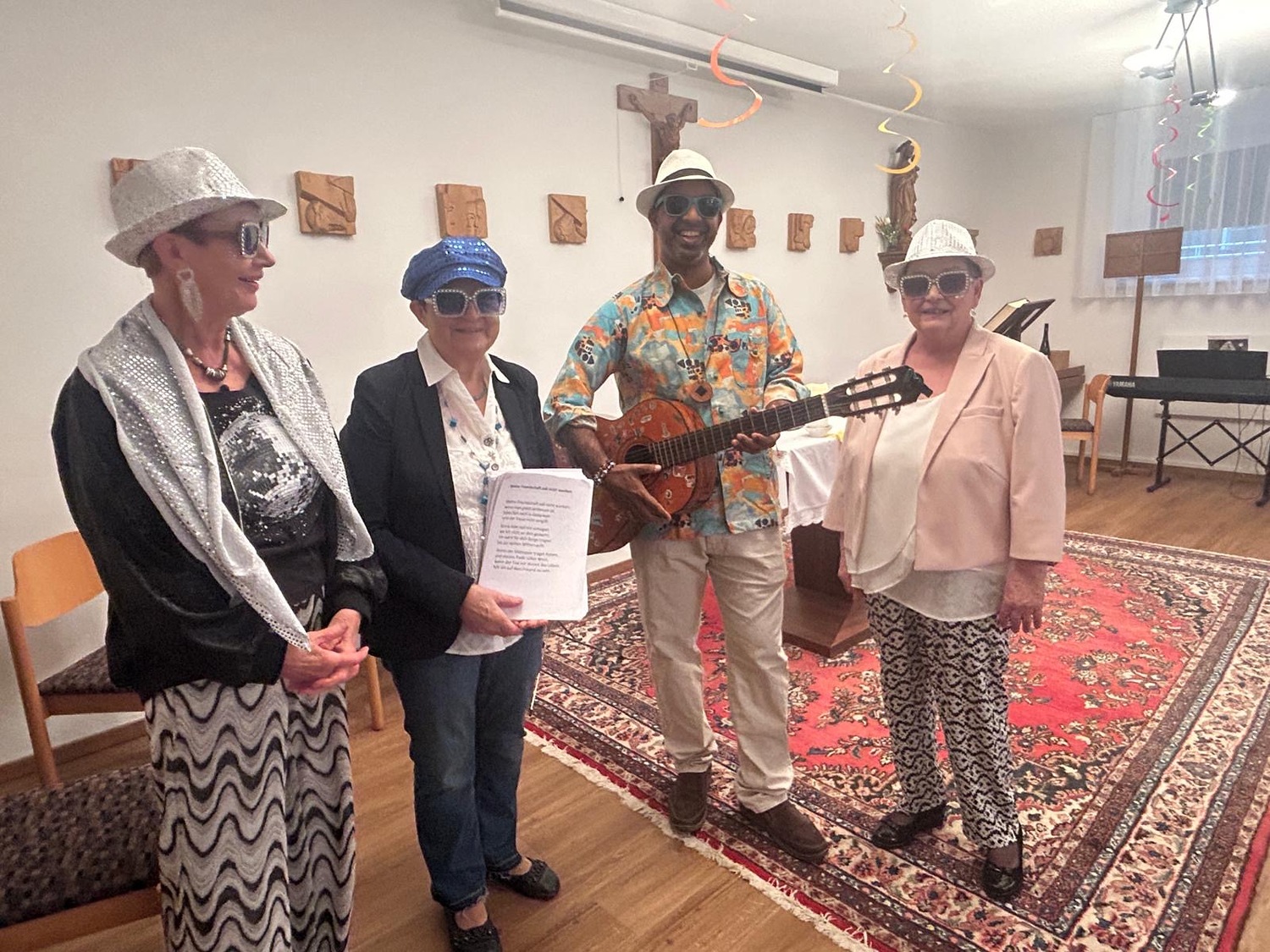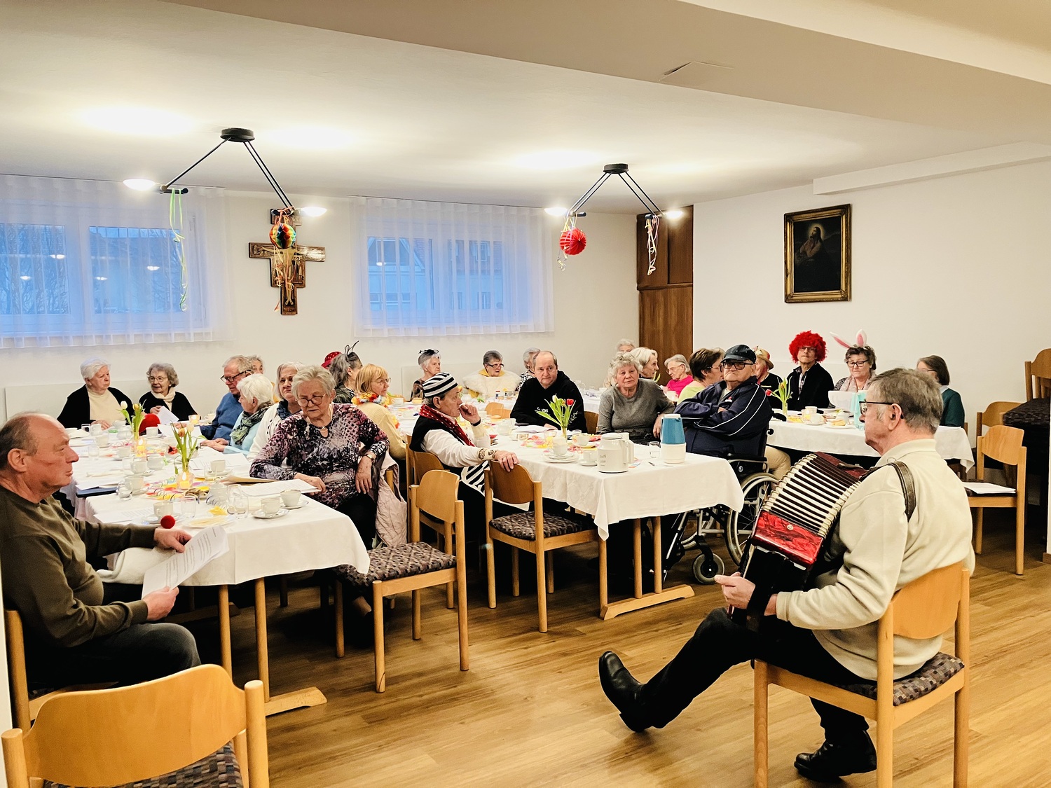 Mit lustigen Texten, Witzen und viel Humor wurde herzlich gelacht. Gemeinsam sang man alte, vertraute Lieder, musikalisch begleitet von einem Musikanten, der für beste Stimmung sorgte. Schon bald hielt es einige nicht mehr auf den Stühlen, und es wurde getanzt und geschunkelt.