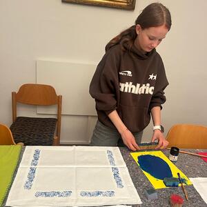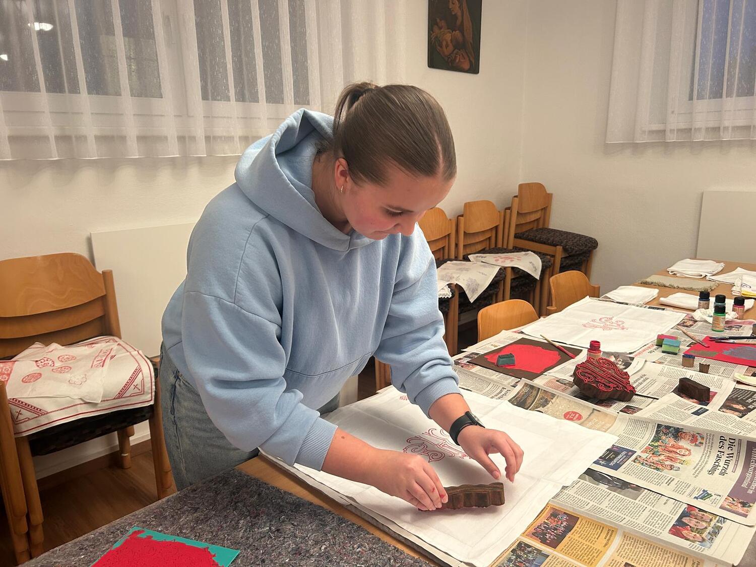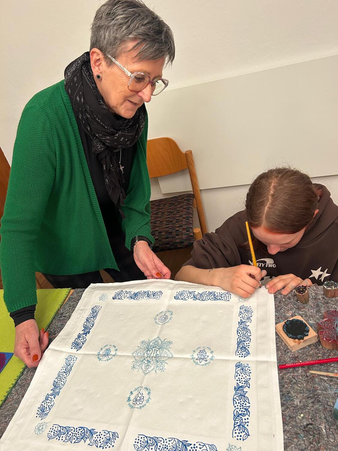 Besonders schön zu beobachten war das bunte Miteinander: Von Kindern und Jugendlichen bis hin zu erfahrenen Frauen waren alle Generationen vertreten. Gemeinsam lernten sie die Technik des Handdrucks kennen, deren Wurzeln ursprünglich im Orient liegen.