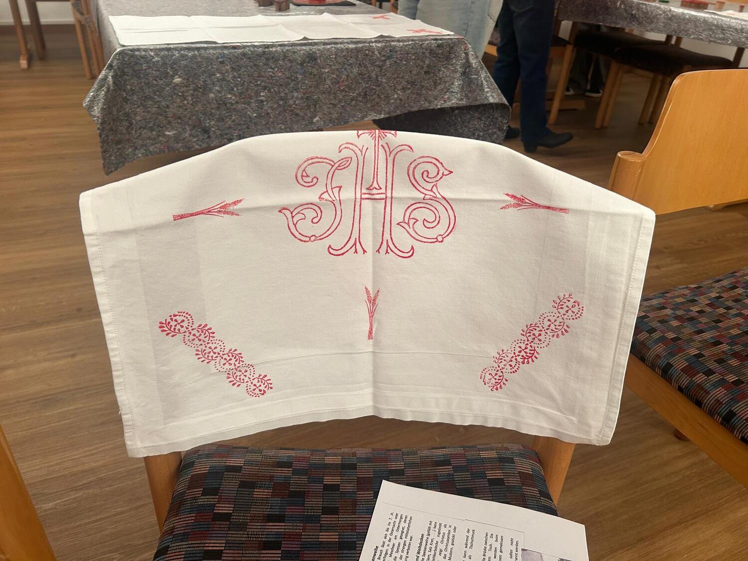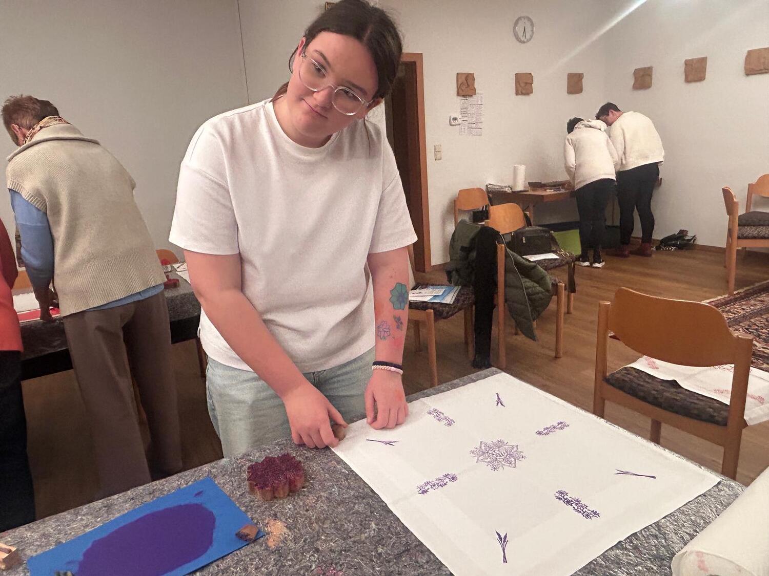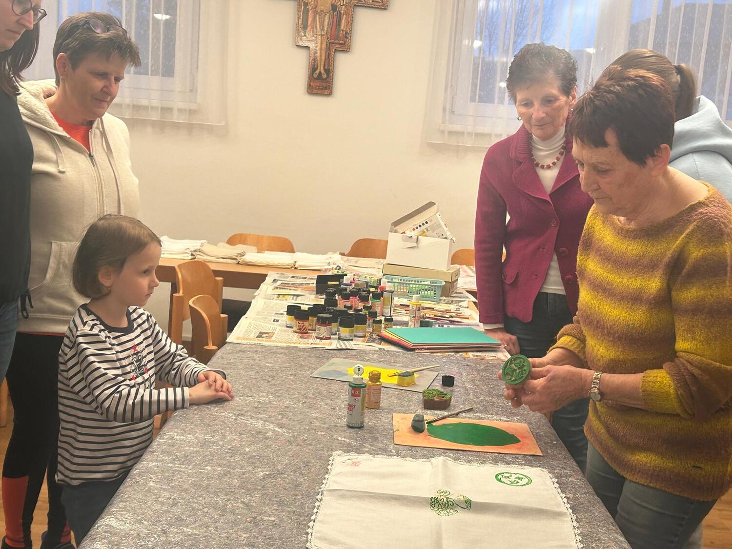 Am vergangenen Donnerstag, dem 26. März, verwandelte sich unser Pfarrheim in eine kreative Werkstatt. Unter der fachkundigen und inspirierenden Leitung von Frau Christa Fraunschiel - einer vielseitig engagierten Dame aus unserer Filiale Kalkgruben - tauchten zahlreiche Teilnehmerinnen in die faszinierende Welt des Stoff-Handdrucks ein.
