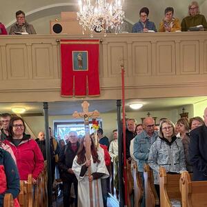 Gut gestärkt versammelte sich die Gemeinschaft anschließend in der Filialkirche zur feierlichen Heiligen Messe mit Pater David Gold. In seiner Predigt schlug er die Brücke vom Evangelium zu unserem heutigen Alltag: Auch wir dürfen darauf vertrauen, dass der Auferstandene uns auf unseren persönlichen Lebenswegen begleitet – oft unerkannt, aber immer gegenwärtig.