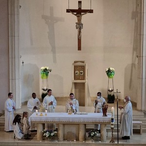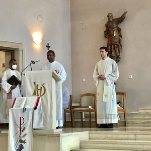 Diesmal durfte ich in meine Pfarre einladen. Treffpunkt war um 16 Uhr bei Kaffee und Kuchen im Pfarrheim Lackenbach. Um 18 Uhr feierten wir dann gemeinsam mit Hauptzelebrant Pfarrer Stefan Jahns eine Heilige Messe in der Pfarrkirche Lackenbach, in der auch um geistliche Berufungen gebetet wurde.