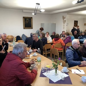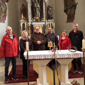 Kan. Roman Schwarz bedankte sich für alle Vorbereitungsarbeiten, für die inhaltliche Gestaltung und für die gute Gemeinschaft beim Pilgern. Dieser Dank galt auch Pfarrer Shinto und den Mitarbeiterinnen der Pfarre Kobersdorf, welche überraschend zu einer Agape einluden.