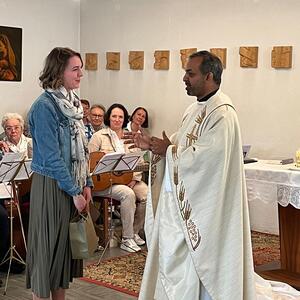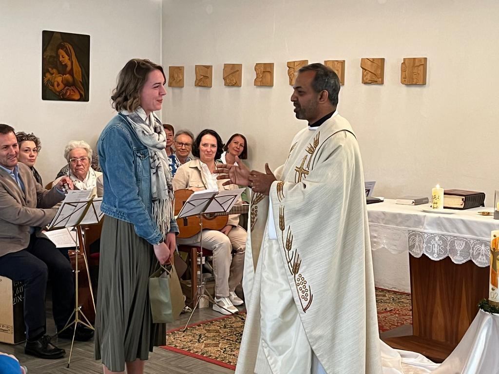 Danke auch an Martina Pauer, unsere Chorleiterin. Mit großer Freude leitet sie unseren Kirchenchor und wir sind sehr froh und dankbar, sie als unsere Chorleiterin zu haben.