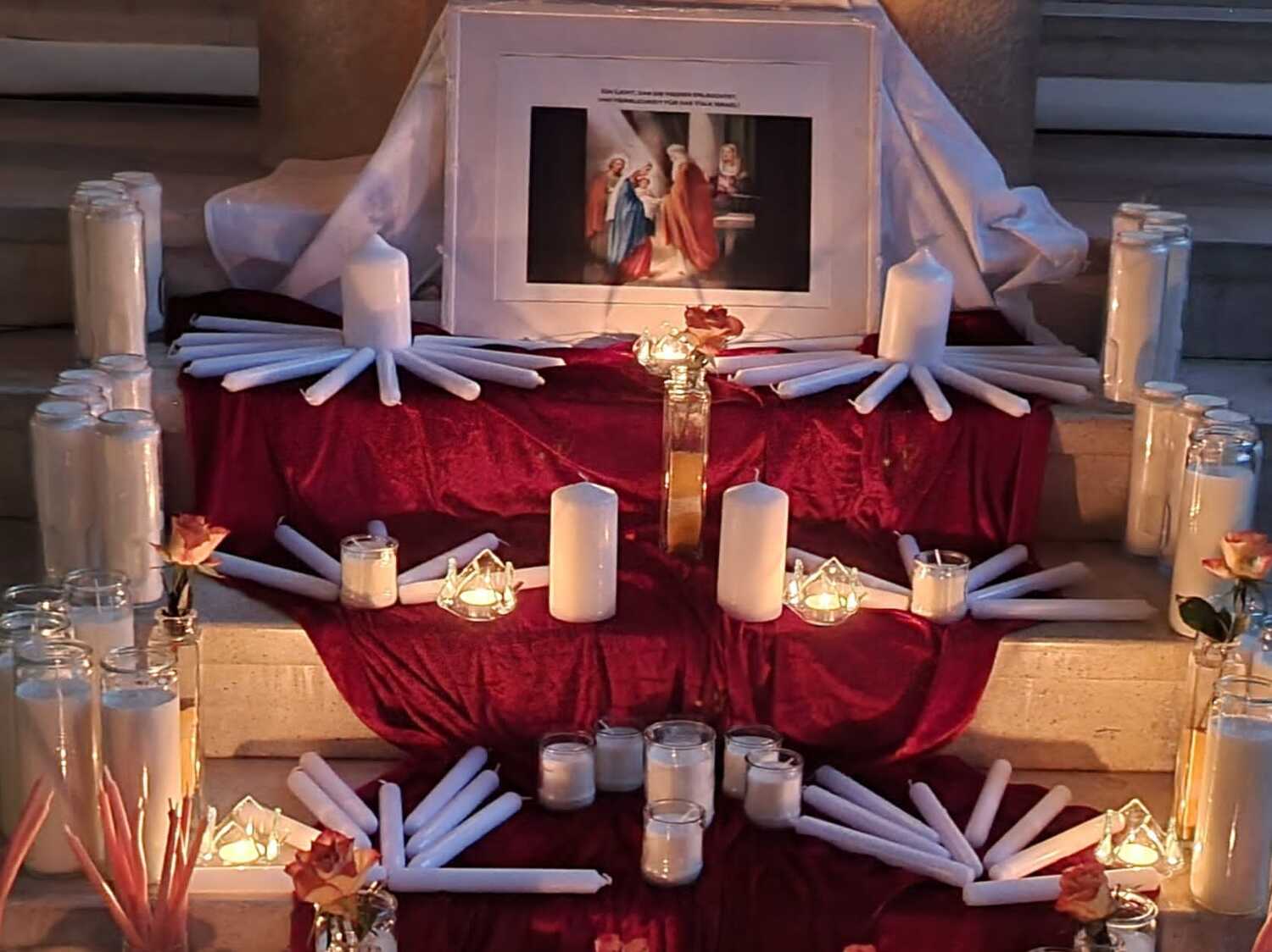 Die brennenden Kerzen sind Symbol für Jesus als „das Licht der Welt“.