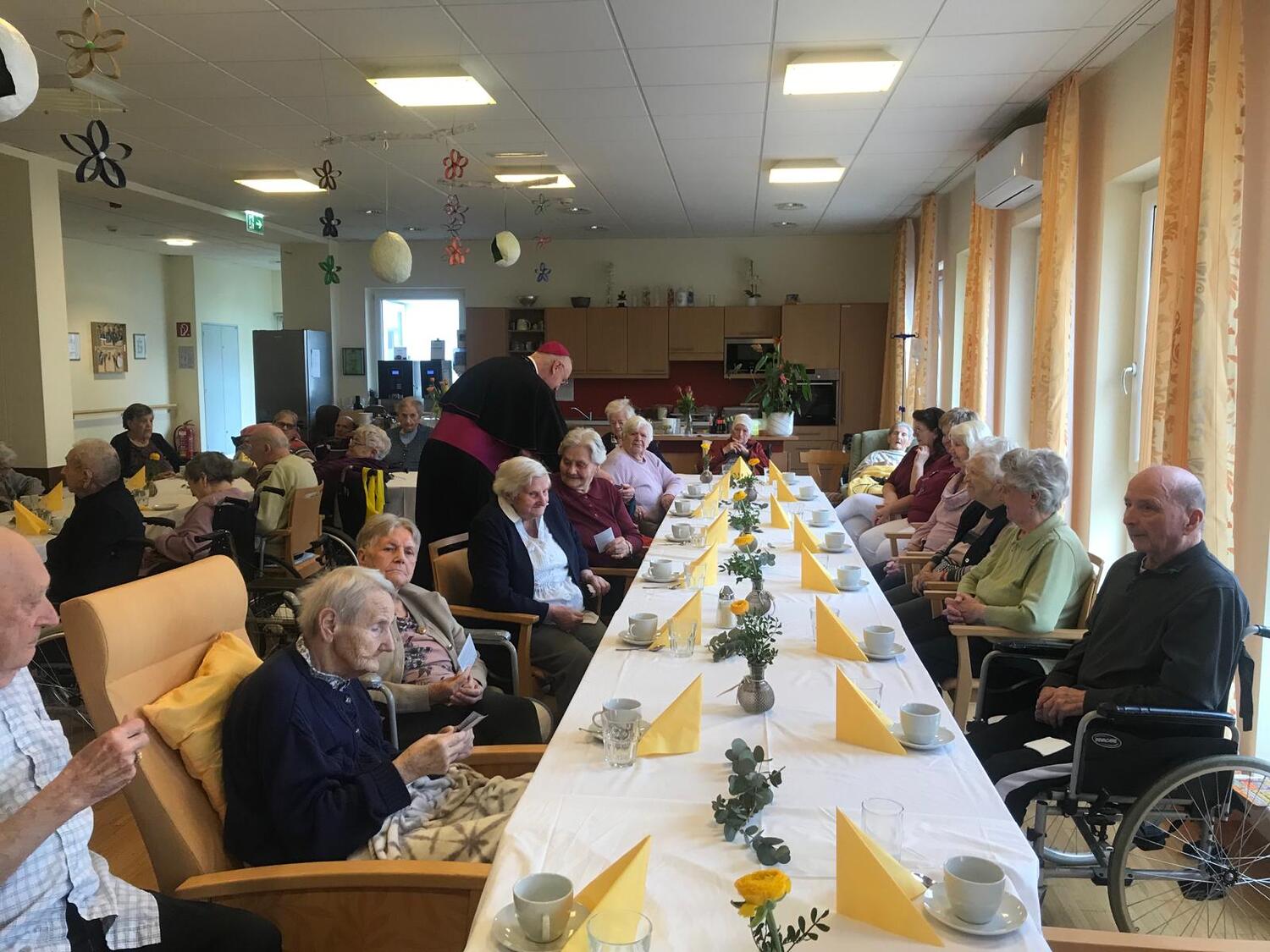 Im Anschluss konnte bei einer Agape im Pfarrheim Lackenbach der Bischof mit den Menschen ins persönliche Gespräch kommen. Bevor er dann nach dem Mittagessen weitere Filialen besuchte, traf er noch den Pfarrgemeinderat von Lackenbach. Berührende Begegnungen durften wir im Anschluß im Pflegekompetenzzentrum Lackenbach erfahren.
