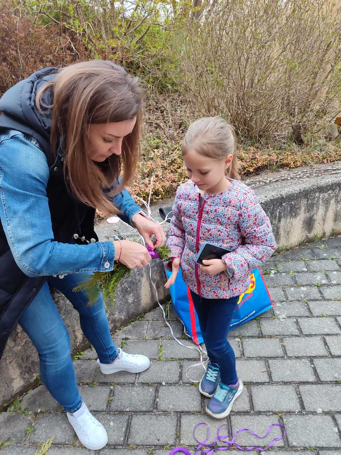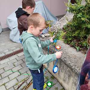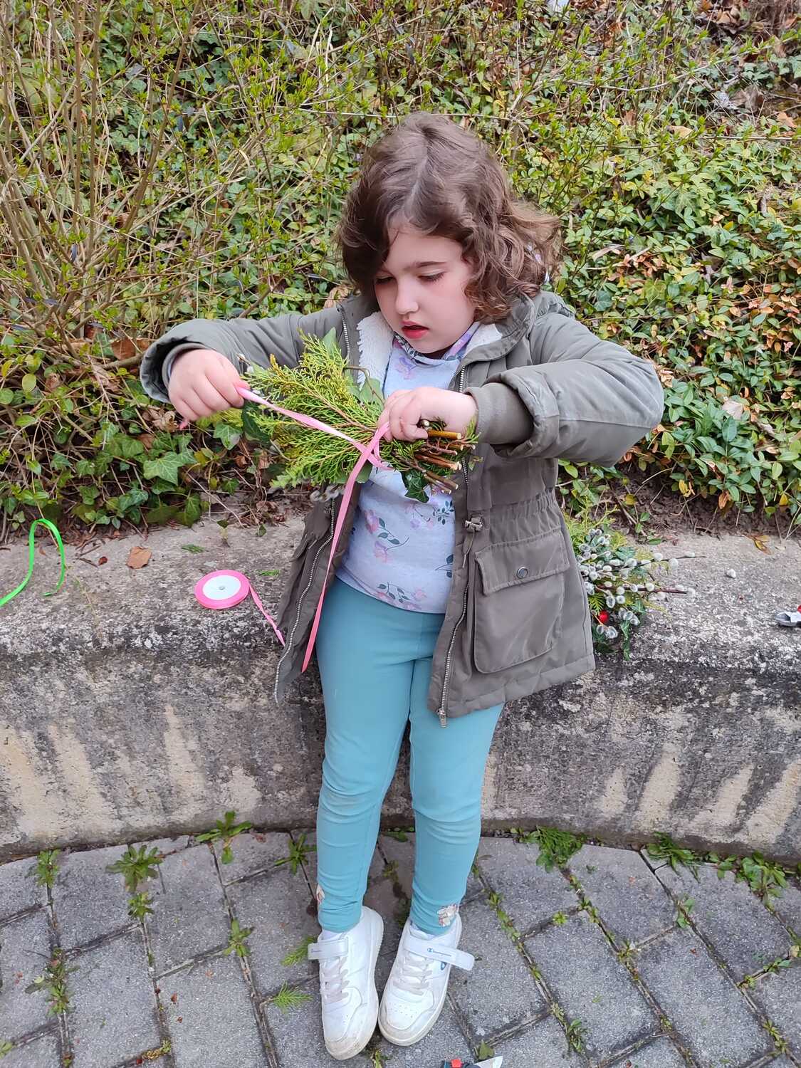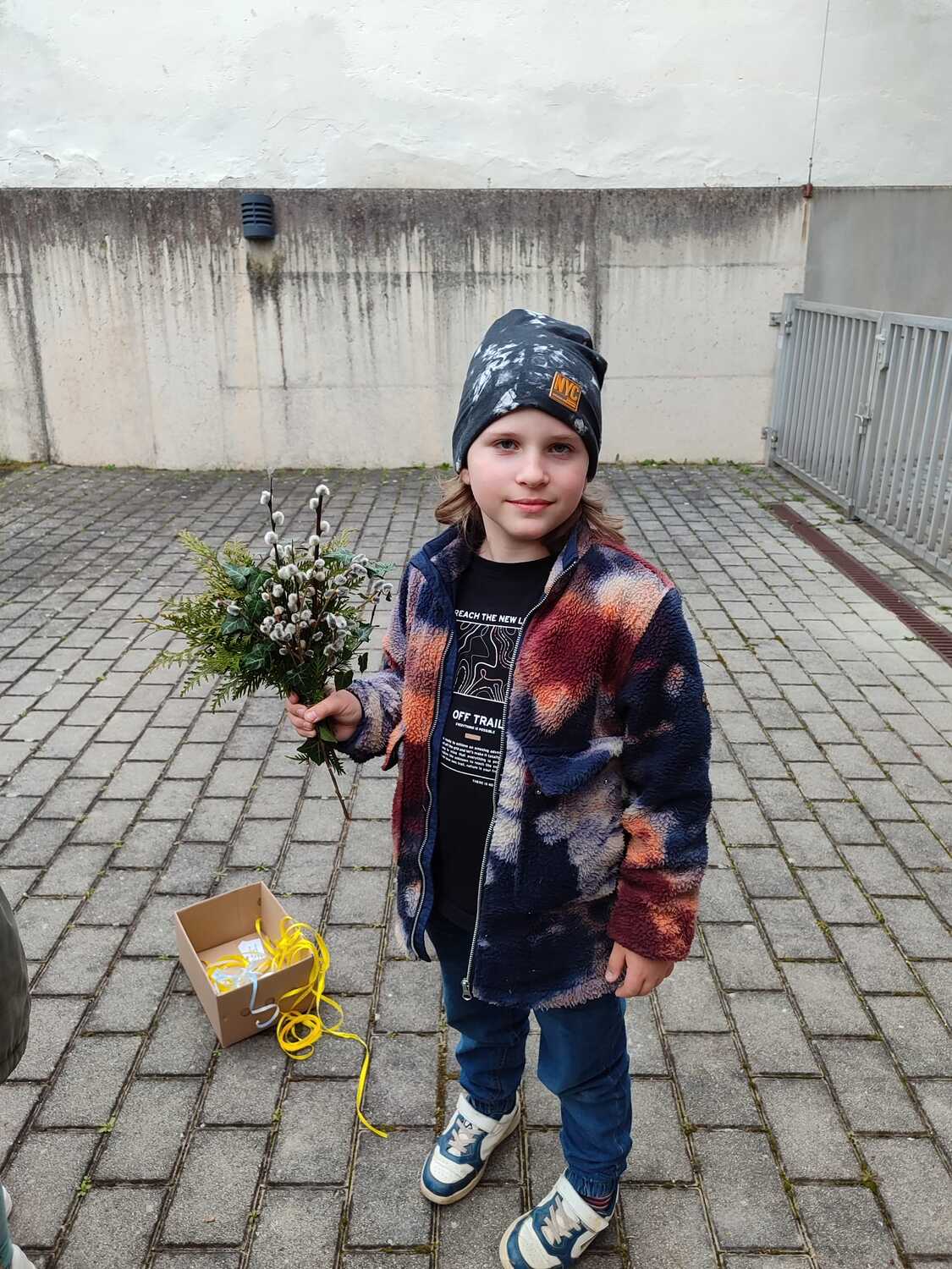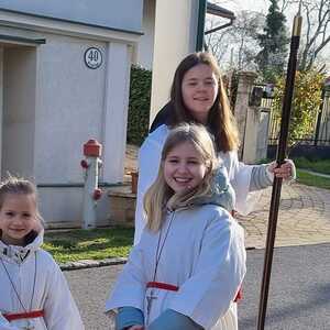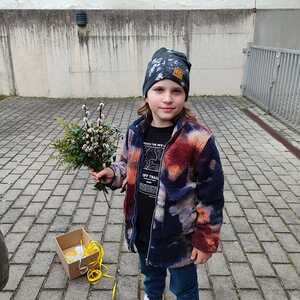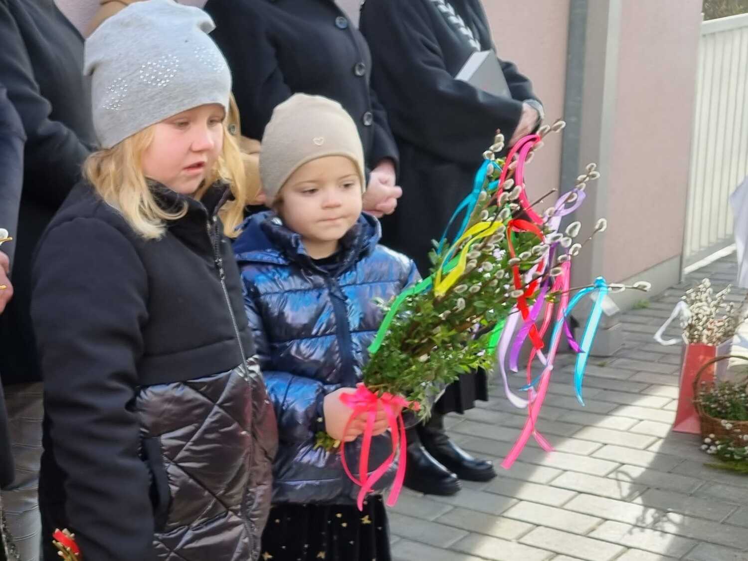 Die Palmbuschen, die von den Kindern in die Kirche getragen wurden, wurden ein paar Tage davor gemeinsam im Pfarrheim gebunden. Die Freude darüber war den Kindern ins Gesicht geschrieben.