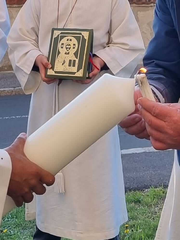 In der Osternacht bricht die Stille durch den erlösenden Ruf, dass Christus als das Licht der Welt immer gegenwärtig ist. Der Stein am Eingang des Grabes ist weg, das Grab ist leer – ER LEBT!
