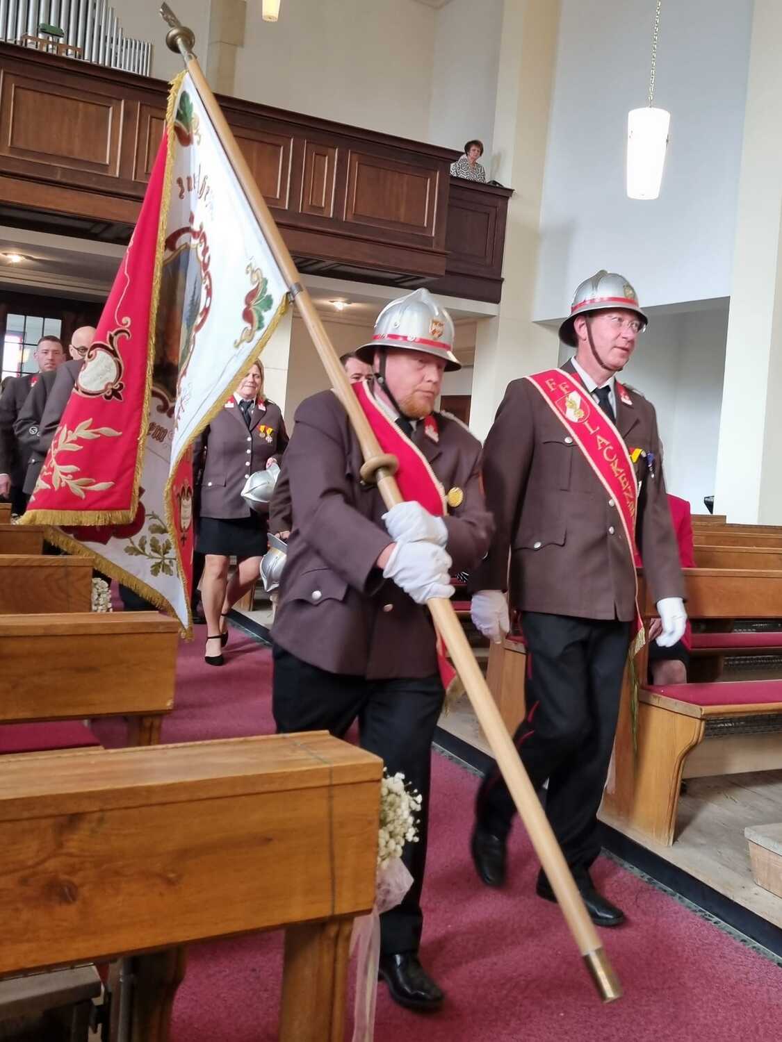 Die Feuerwehr Lackenbach findet sich aber nicht nur rund um den 04. Mai in der Kirche ein, sondern begleitet auch die Fronleichnams- und Allerheiligenprozession in der Pfarrgemeinde. Die Mitglieder*innen übernehmen dabei auch immer sehr gerne die Lektorendienste und sind somit noch aktiver in den Messablauf eingebunden, so wie auch in diesem Jahr am Tag der Feuerwehr, welchen 20 aktive und 8 Feuerwehrjugendmitglieder beiwohnten. Noch ein schöner Akt der Verbundenheit ist allerdings, dass einige Mitglieder der Feuerwehrjugend auch im Dienst als Ministrant*innen stehen und mit ihren Uniformen an diesem besonderen Tag ihre Arbeit beim Altar während der Messfeier verrichten durfen.