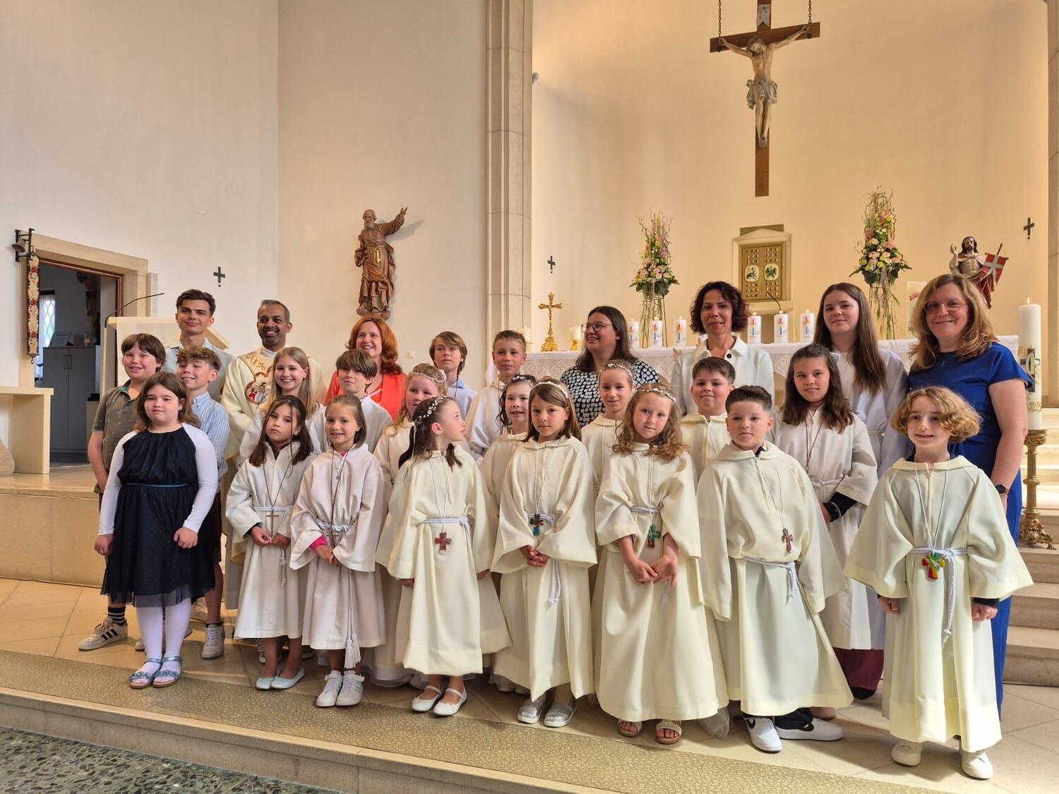 Im Rahmen eines feierlichen Gottesdienstes erneuerten die Erstkommunionkinder das Taufversprechen und empfingen zum ersten Mal die Heilige Kommunion, somit wurden sie in die Mahlgemeinschaft Jesu aufgenommen.