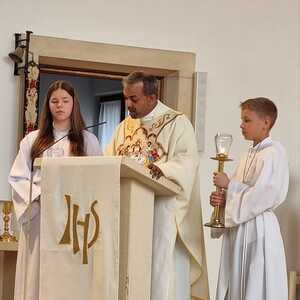Gemeinsam mit ihren Müttern bereiteten sie sich voller Freude auf den großen Tag vor. Es wurden Palmbuschen gebunden, Brote gebacken und Kerzen gebastelt. Im Religionsunterricht erklärte ihnen Religionslehrerin Adele Grill die liturgischen Themen wie z.B. die Taufe, die Eucharistiefeier, die Beichte und die Nähe zu Gott. So oft es ging war unser lieber Herr Pfarrer Mag. Shinto Varghese Michael bei den Vorbereitungsstunden dabei, was für die Kinder ein besonderes Highlight war.