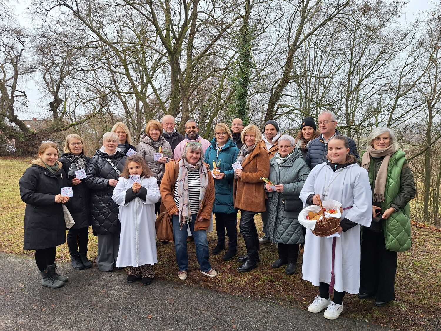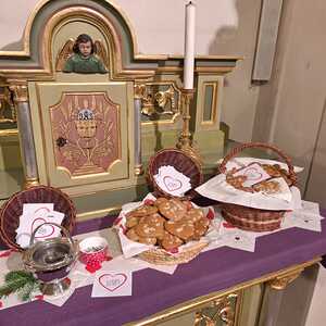 Zum Abschluss der Messe erhielt jede/r Gottesdienstbesucher:in ein Lebkuchenherz als kleines Dankeschön. Anschließend lud eine kleine Agape am Kirchenplatz dazu ein, noch miteinander ins Gespräch zu kommen und die Freude dieses besonderen Adventsonntags weiterzutragen.