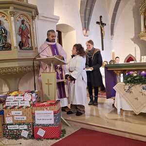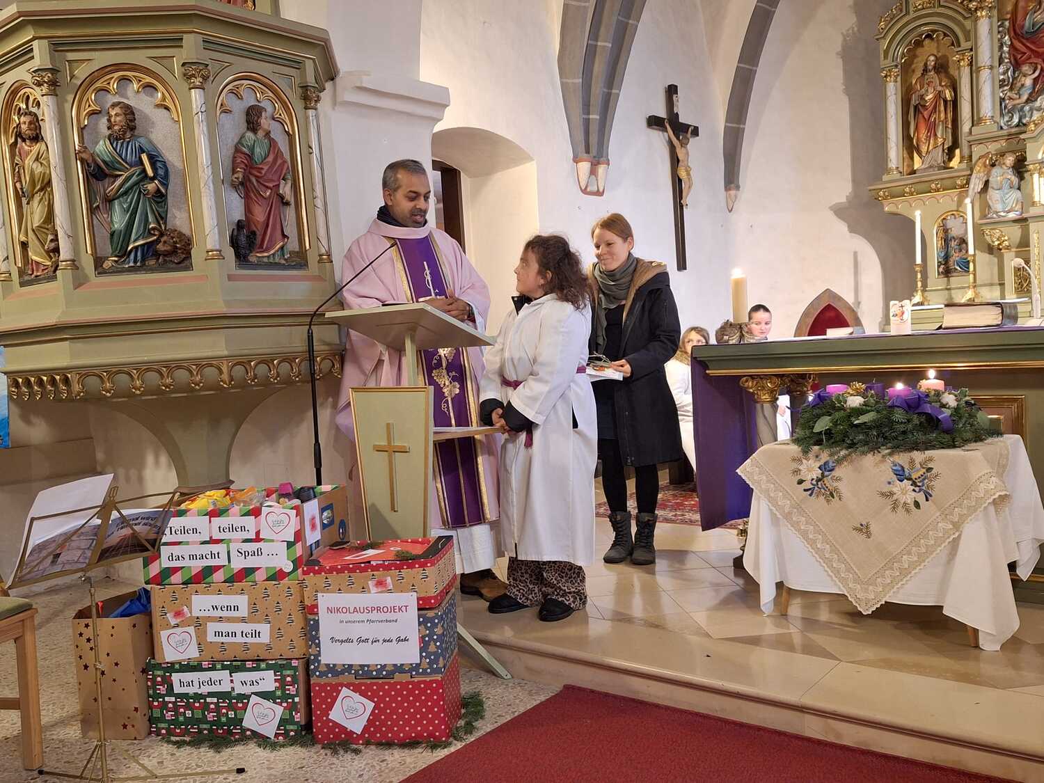 Im Rahmen des Nikolausprojektes „Teilen, teilen – das macht Spaß“ haben in den vergangenen Wochen viele Kinder, Familien und Pfarrmitglieder des gesamten Pfarrverbandes mit großem Engagement Geschenke gesammelt. Diese Gaben wurden im Gottesdienst gesegnet und im Anschluss feierlich an die Gäste übergeben – als sichtbares Zeichen der Verbundenheit, der Wertschätzung und der christlichen Nächstenliebe.