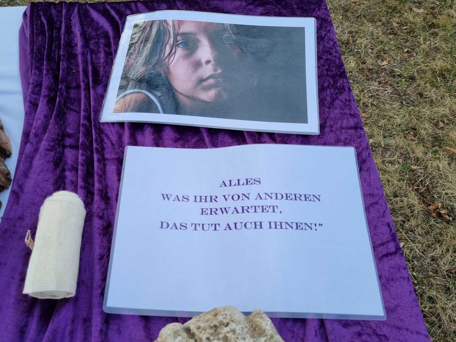 Die Betrachtung der einzelnen Stationen wurde mit Symbolen ergänzt, die die Kinder und Jugendlichen zum Kreuz brachten und so bezeugten, dass das Kreuz nicht nur ein Zeichen des Leides, sondern auch ein Zeichen der Hoffnung ist.