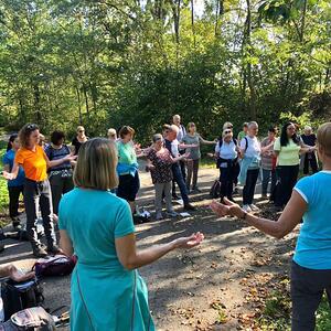 Bei der 1. Station ein Marterl mit einer Pietastatue wurden meditative Gedanken und Gebete gelesen und ein Marienlied gesungen. Danach ging es weiter Richtung Lindgraben zum Ökumenischen Kreuz. Bei zwei weiteren Stationen war Zeit zum Innehalten. Angeleitet durch meditative Texte, Gesprächsanregungen bzw. auch in Stille nachzudenken ging es weiter bis zur Florianikapelle.