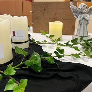 Christus spricht: Ich bin das Licht der Welt. Wer mir nachfolgt, der wird nicht wandeln in der Finsternis, sondern wird das Licht des Lebens haben. Daran erinnern uns die Kerzen, und wir vertrauen darauf, dass unsere lieben Verstorbenen im Licht und in der Geborgenheit Gottes zuhause sind.