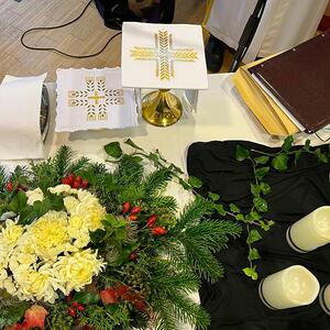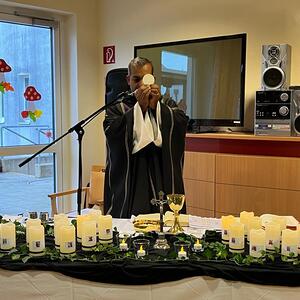 Nach dem Gottesdienst wurde eine Agape vorbereitet, wo Angehörige, Bewohnerinnen und Bewohner, sowie das Pflegepersonal sich noch über das eine oder andere Ereignis austauschen konnten.