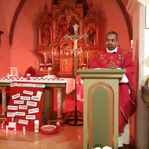 Am Freitag Abend folgte der so wichtige zweite Teil - die Eucharistie. Pfarrer Shinto, Altpfarrer Mück und der ganze Pfarrverband haben in einer sehr berührend gestalteten Messe unserer verfolgten Schwestern und Brüder gedacht, aber auch die Täter der Liebe Gottes übergeben.