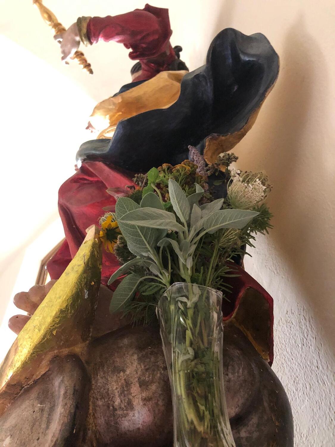 Auch in den Filialen Lindgraben und Tschurndorf wurden mit viel Eifer Kräuter gesammelt und von den Frauen zu wunderschönen Sträußen gebunden. Pfarrer Shinto segnete diese im Rahmen des Patroziniumsfestes in Tschurndorf und nach der Vorabendmesse in Lindgraben. Am Ende der Heiligen Messen wurden diese an die Gottesdienstbesucher verteilt und durften mit nach Hause genommen werden.