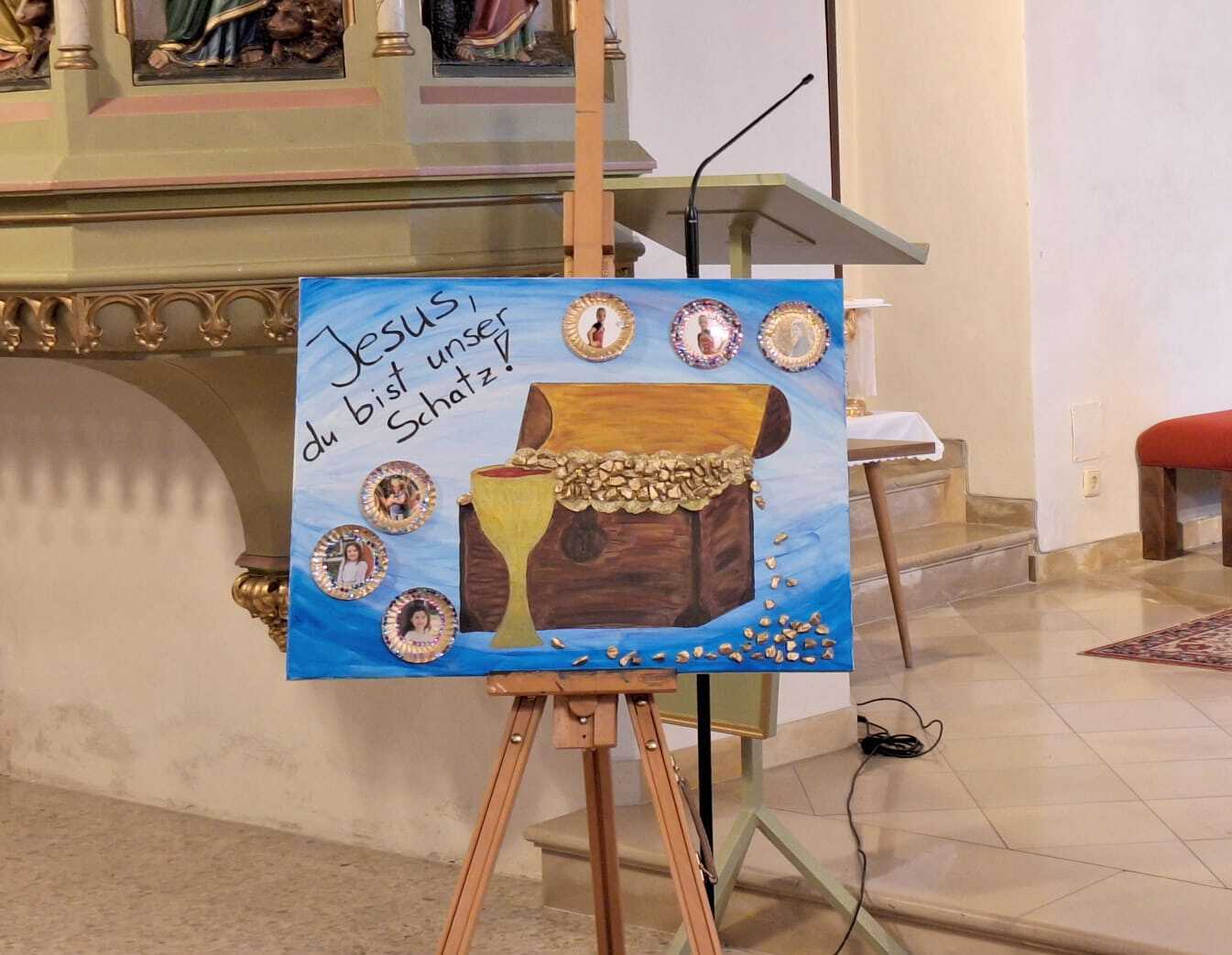 Unter dem Motto „Jesus, du bist mein Schatz“ wurde deutlich, dass der größte Schatz nicht aus Gold oder Edelsteinen besteht, sondern in der Freundschaft und Liebe Jesu zu finden ist. In der Predigt hörten wir davon, dass Jesus ein Schatz ist, der niemals vergeht – und dass er jeden einzelnen von uns als wertvoll und geliebt ansieht.