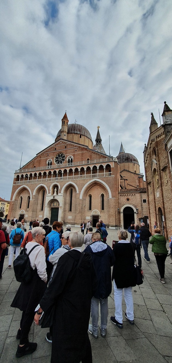Auf dem Programm standen Triest, Venedig, Padua und Verona. In Venedig zelebrierte Pfarrer Shinto nach einer ausführlichen Führung durch den Dogenpalast einen Gottesdienst in der Krypta des Markusdomes. Danach konnten die weiteren Sehenswürdigkeiten von Venedig bewundert werden. In Padua wurde die Basilika des Heiligen Antonius mit seinem Grabmahl besucht, wo der Herr Pfarrer mit den 55 Reiseteilnehmern ebenfalls eine Hl. Messe feierte. Besichtigt wurde in Padua auch die große Kirche Santa Giustina, in der sich das Grabmahl des Evangelisten Lukas befindet. In Verona standen auf dem Besichtigungsprogramm u. a. der Dom, die Scaliger-Grabmäler, das Haus der Julia mit dem berühmten Balkon und die Arena di Verona. Am 6. Oktober unternahm Pfarrer Shinto mit seinen Gläubigen einen Bootsausflug zu den Laguneninseln Murano (bekannt wegen der Glaskunst), Burano (Spitzenherstellung) und Torcello. In Torcello wurden die Basilika Santa Maria Assunta und die angrenzende Kirche Santa Fosca besichtigt, wo Pfarrer Shinto auch eine Hl. Messe las. Das schöne Wetter machte den ganztägigen Bootsausflug in der Lagune von Venedig für die Frauen und Männer des Pfarrverbandes zu einem unvergesslichen Erlebnis.