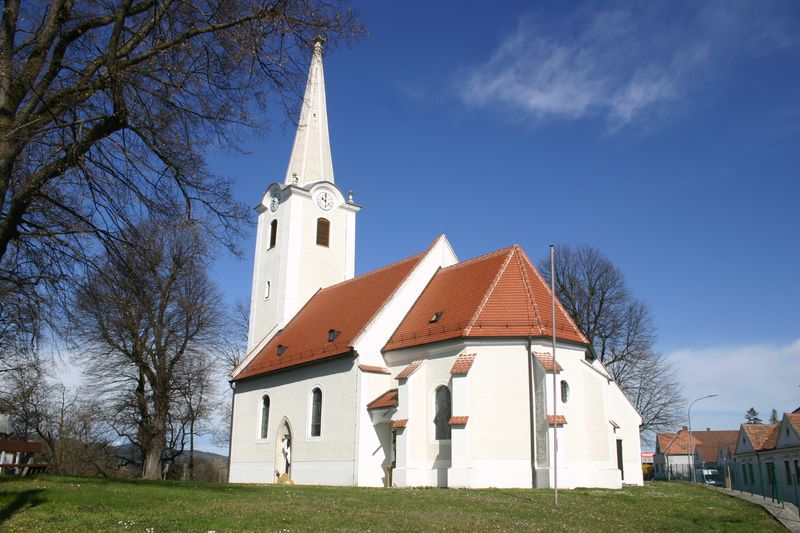 Die Pfarrkirche steht am nördlichen Ortsende und ist der Heiligsten Dreifaltigkeit geweiht. Sie hat ihren Ursprung bereits in der Spätgotik, im 14. Jahrhundert. 1753 wurde sie zu ihrer jetzigen Form ausgebaut. Erwähnenswert sind die gotischen Spitzbögen im Altarraum. Am barockisierten Hochaltar stellt ein Holzrelief die Heiligste Dreifaltigkeit dar und ist von einer Herz-Jesu und Herz- Marien Statue umrahmt