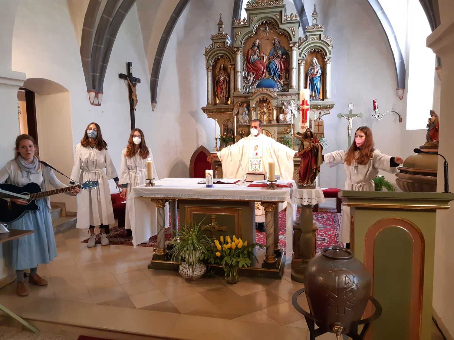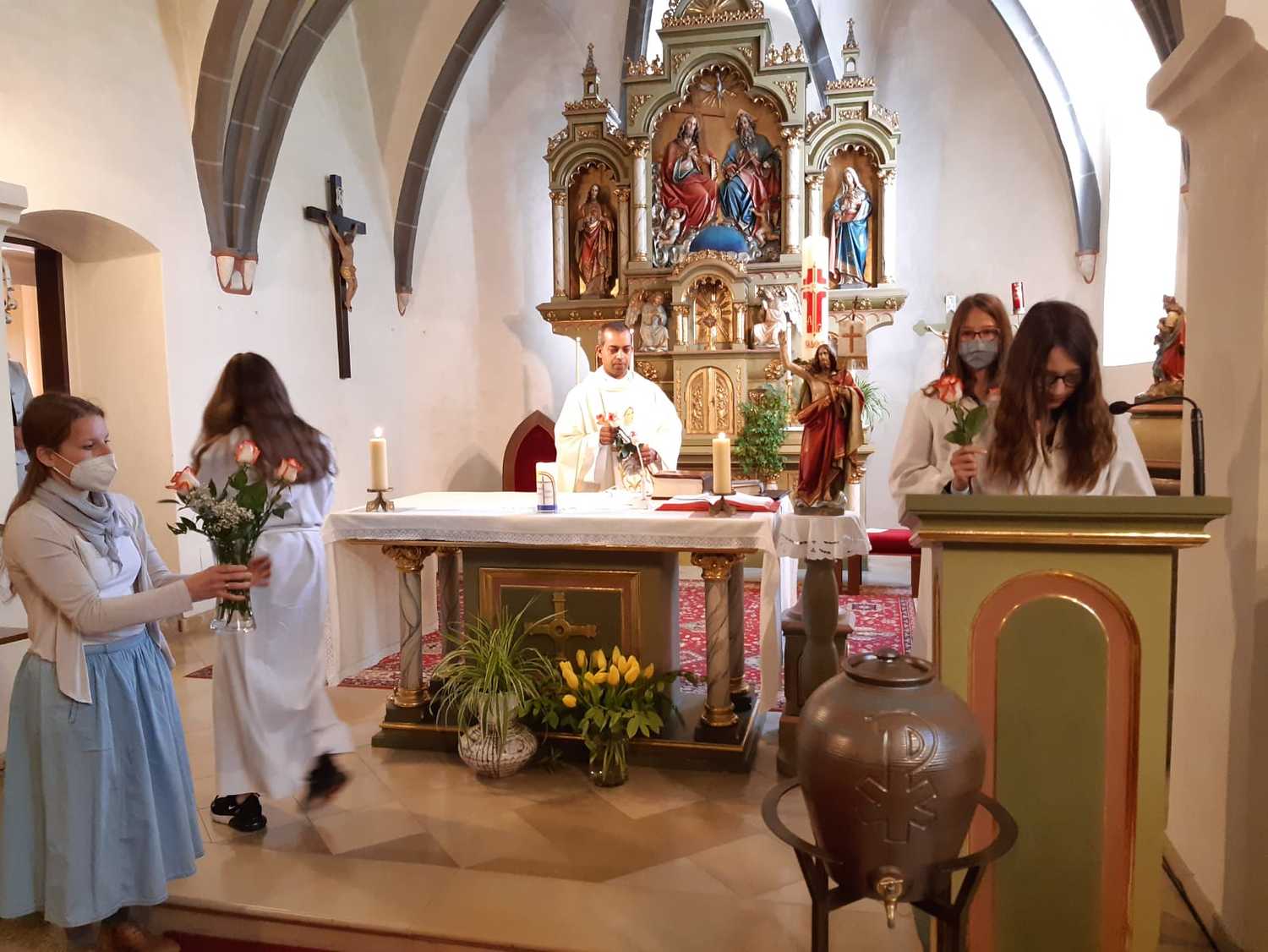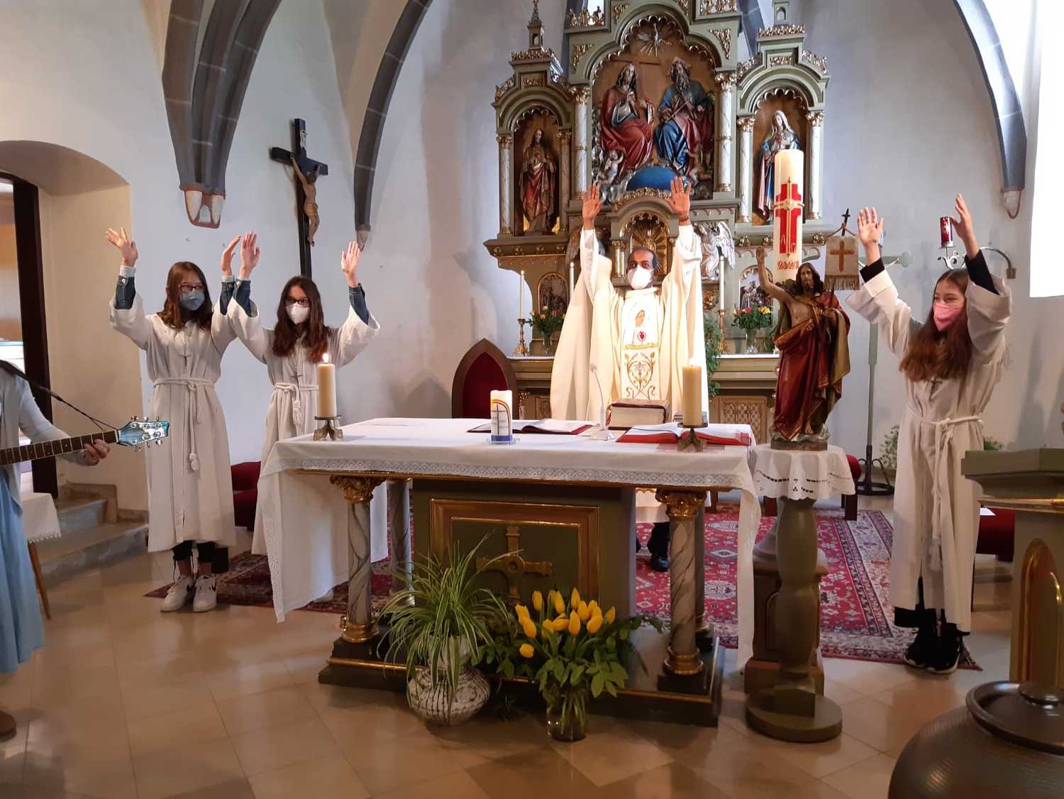 Unsere Minis brachten ihren Dank bei der heutigen Messfeier mit einem Lied an alle unsere Mütter. Es sollte aber auch ein Dank sein, dass Gott stets mütterlich für uns da ist und uns seine Nähe und Liebe schenkt.