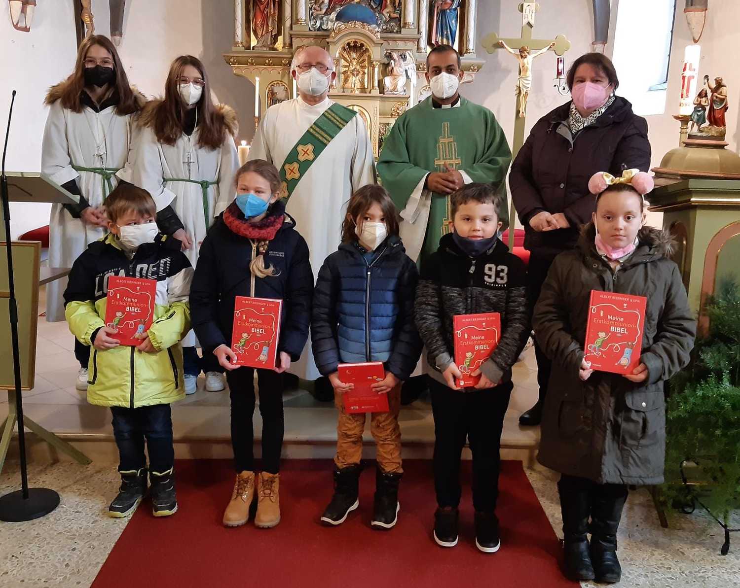 Am Sonntag, dem 30. Jänner wurden sie im Rahmen des Sonntagsgottesdienstes der Pfarre vorgestellt und haben für die gemeinsame Vorbereitung von Pfarrer Shinto eine Kinderbibel erhalten.