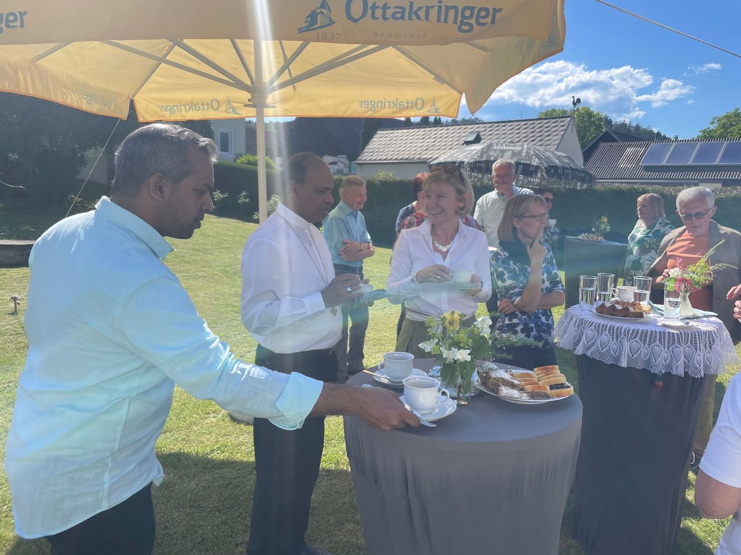 Auf dem Weg in den Süden nahm sich Bischof Jose dann auch die Zeit, meinen Wohnort und meine Kuratoren kennenzulernen. Im Pfarrhofgarten gab es bei strahlendem Sonnenschein und einer guten Agape sehr nette Begegnungen.