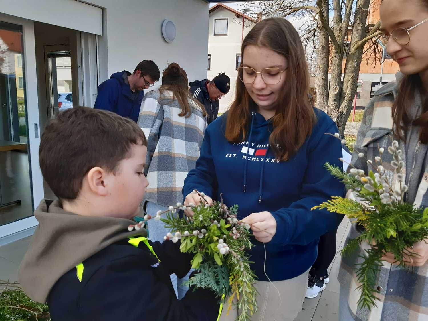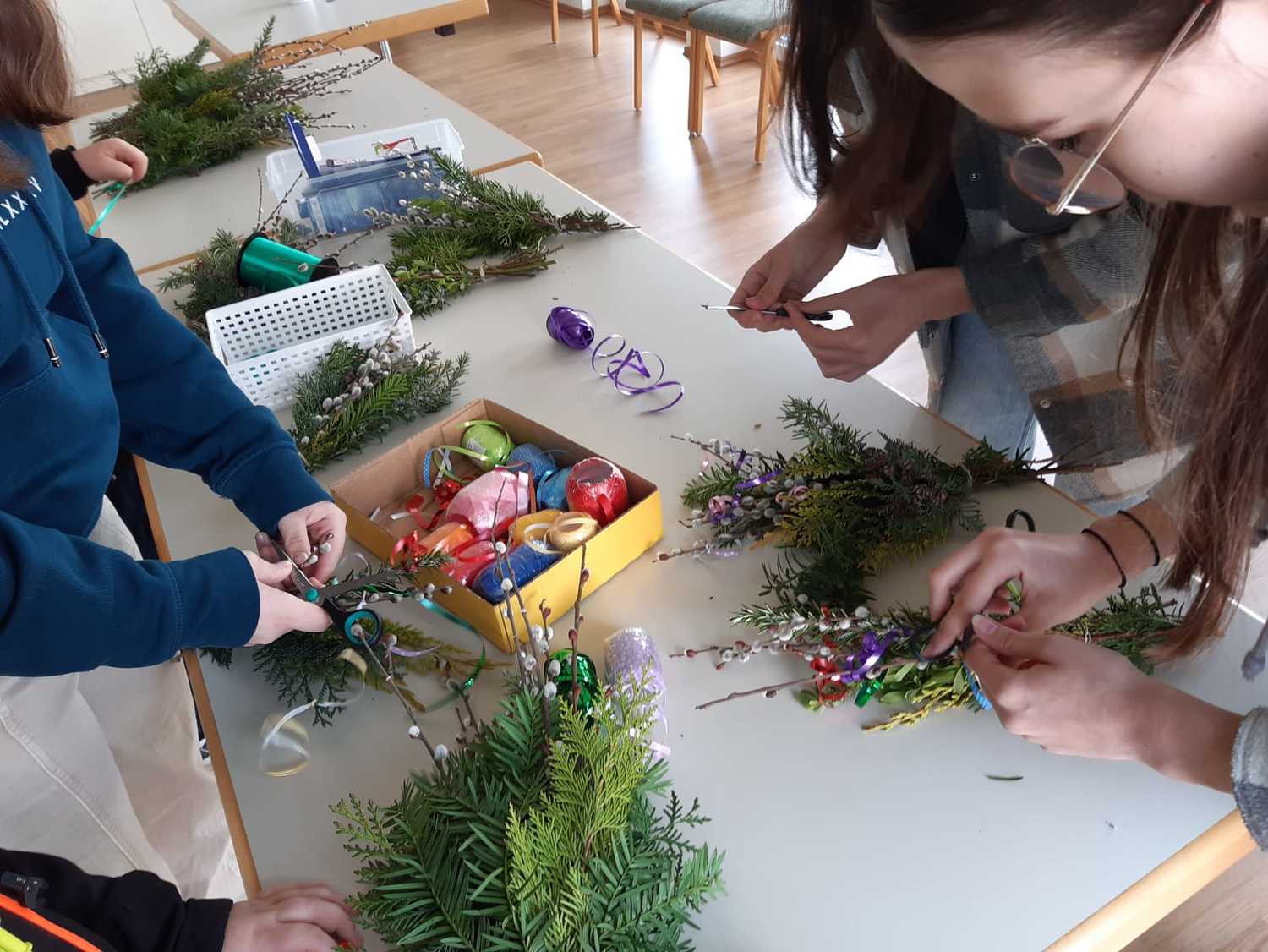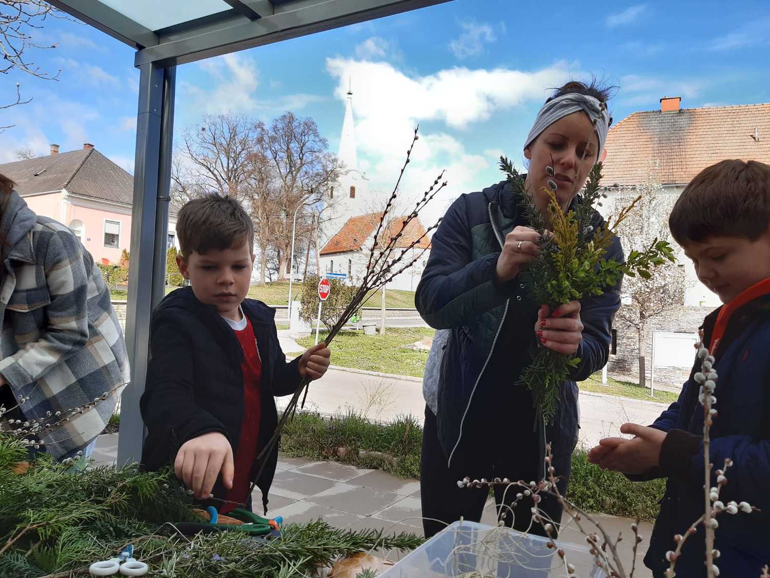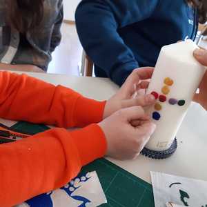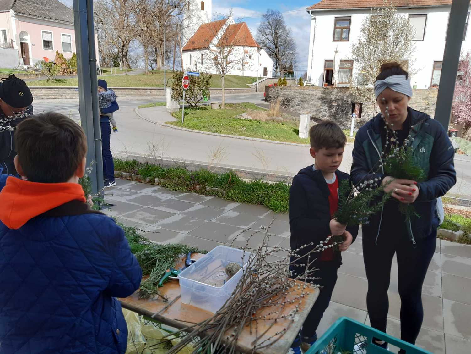 Damit auch wir unsere Freude zeigen können und so wie die Menschen damals Jesus begrüßen können, haben die Kinder unter Anleitung von Jungscharleiterin Katja und Tischmutter Carina wunderschöne Palmbuschen mit den Kindern gebunden. Gemeinsam wurde auch eine Kerze für den Pfarrhof gebastelt und die Fenster des Pfarrhofes wurden mit Bildern und Texten der Karwoche geschmückt.