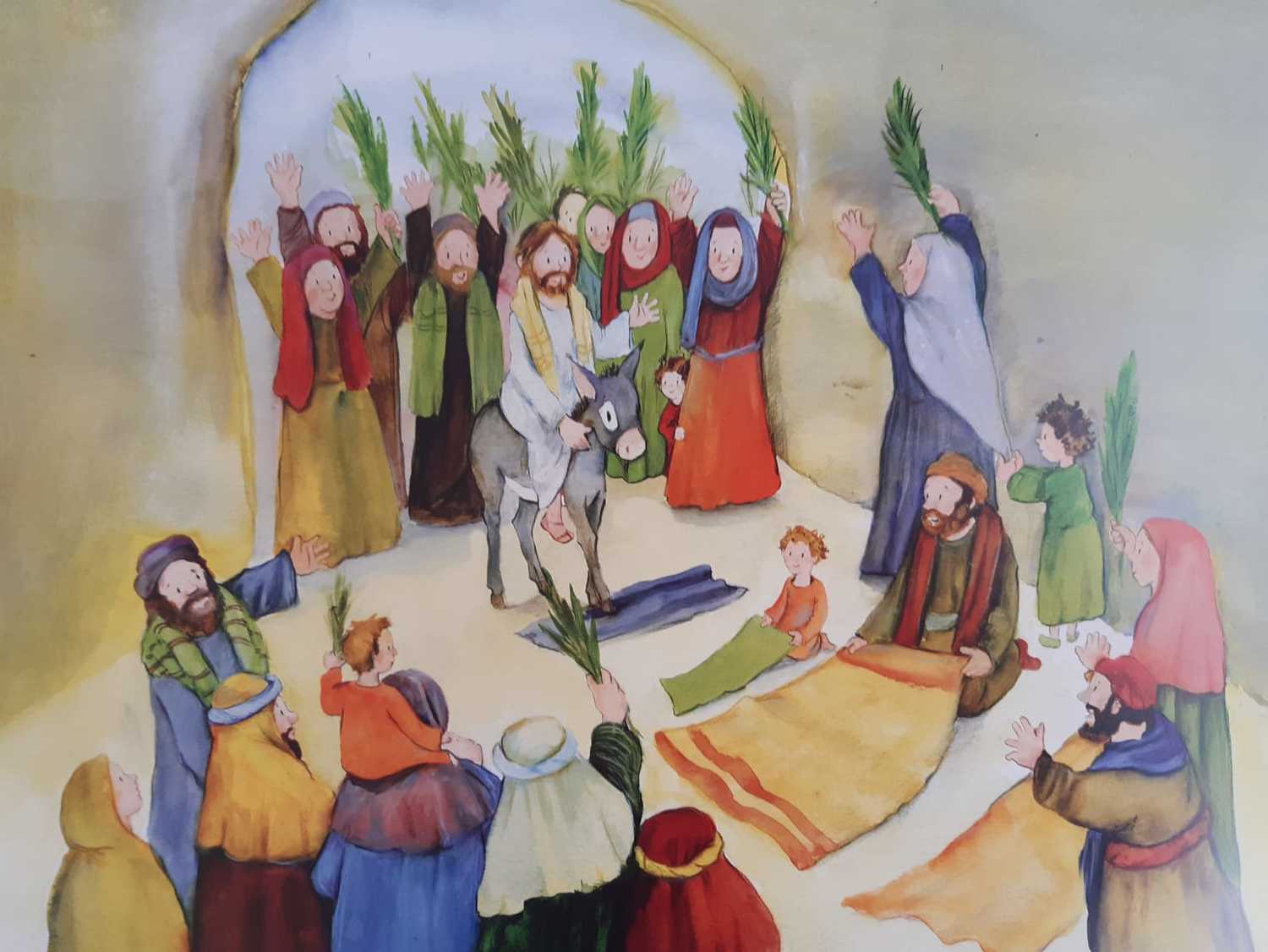Mit dem Palmsonntag beginnen wir die Heilige Woche, wir feiern den Einzug Jesu in Jerusalem. Die Menschen jubelten ihm zu, trugen Palmzweige in den Händen und breiteten ihre Kleider – wie einen roten Teppich – auf dem Boden aus.