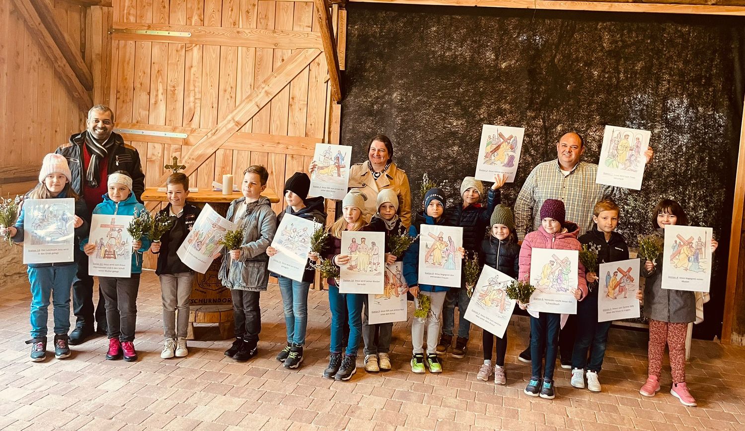 Am Palmsonntag luden die Erstkommunionkinder des Pfarrverbandes Hl. Nikolaus - Kobersdorf, Weppersdorf und Lackenbach zusammen mit ihren Eltern zu einer gemeinsamen Kreuzwegandacht, die im Freien geplant war, jedoch aufgrund des schlechten Wetters in den „Stadl“ verlegt werden musste.