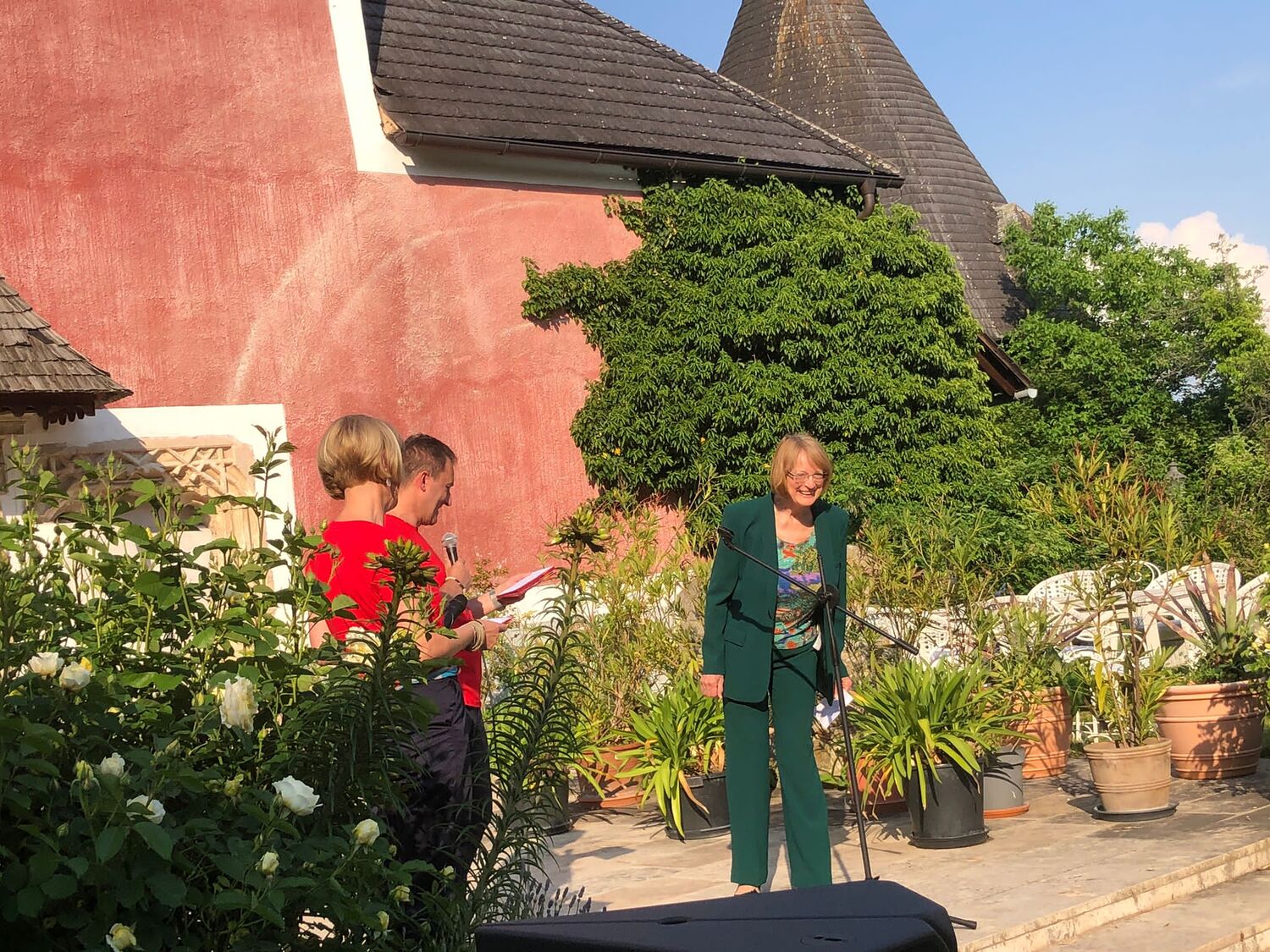 Nach kurzem Fußweg in Richtung evangelische Kirche wurden wir mit Glockengeläut am Martin Luther Platz von den Kindern empfangen. Eine köstliche Agape war bereits von der katholischen Jugend vorbereitet. Nach dem Steigen der Luftballone zum Zeichen des Friedens wurde in der evangelischen Kirche das weitere Programm dargeboten.