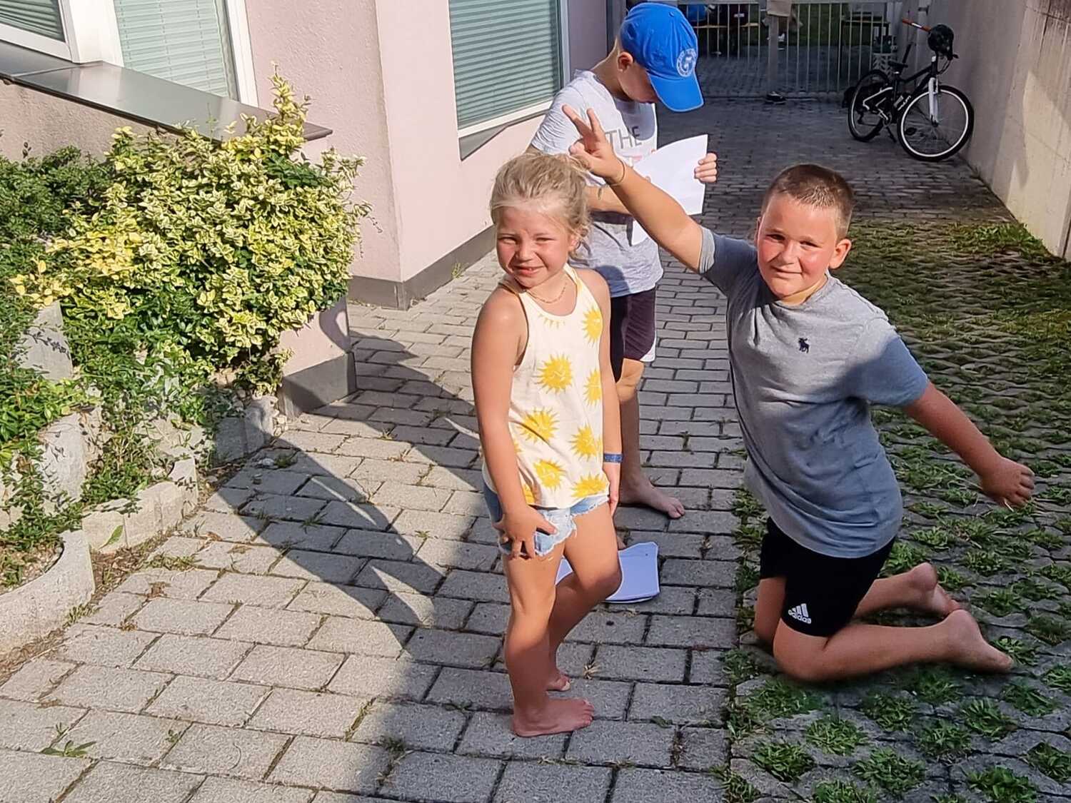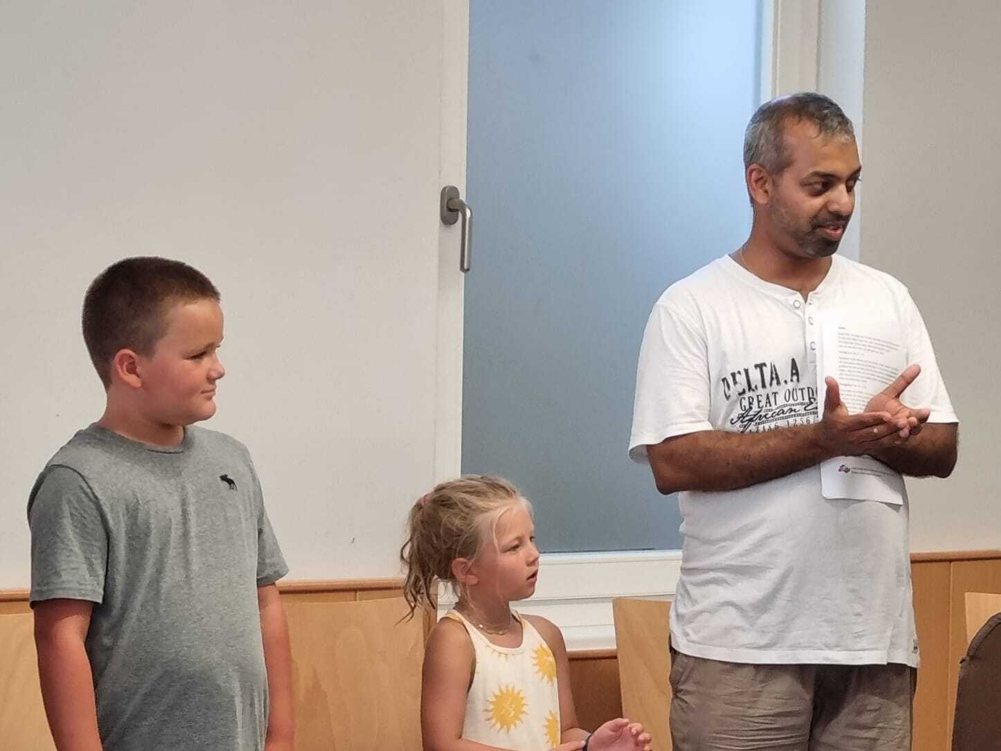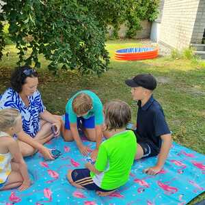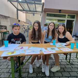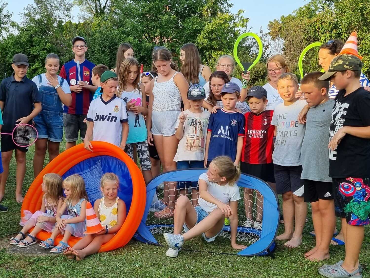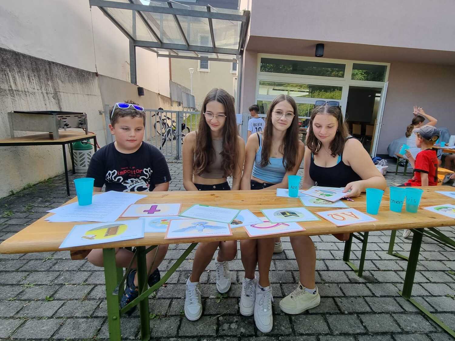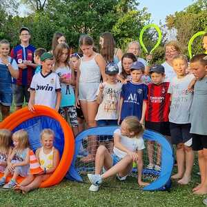 Um 15 Uhr versammelten sich alle im Pfarrhof Lackenbach. Nach einer Begrüßungsrunde spielten wir im schattigen Garten. Wir hatten für die Kinder verschiedene Spiele aufgebaut z.B: Sackhüpfen, Dosen werfen, Fußball, Boccia, Federball, Ball über die Schnur, Uno…. . Doch besonders Spaß machte unsere Wasserbombenschlacht, wo niemand trocken blieb –sogar Herrn Pfarrer Shinto haben wir erwischt. J