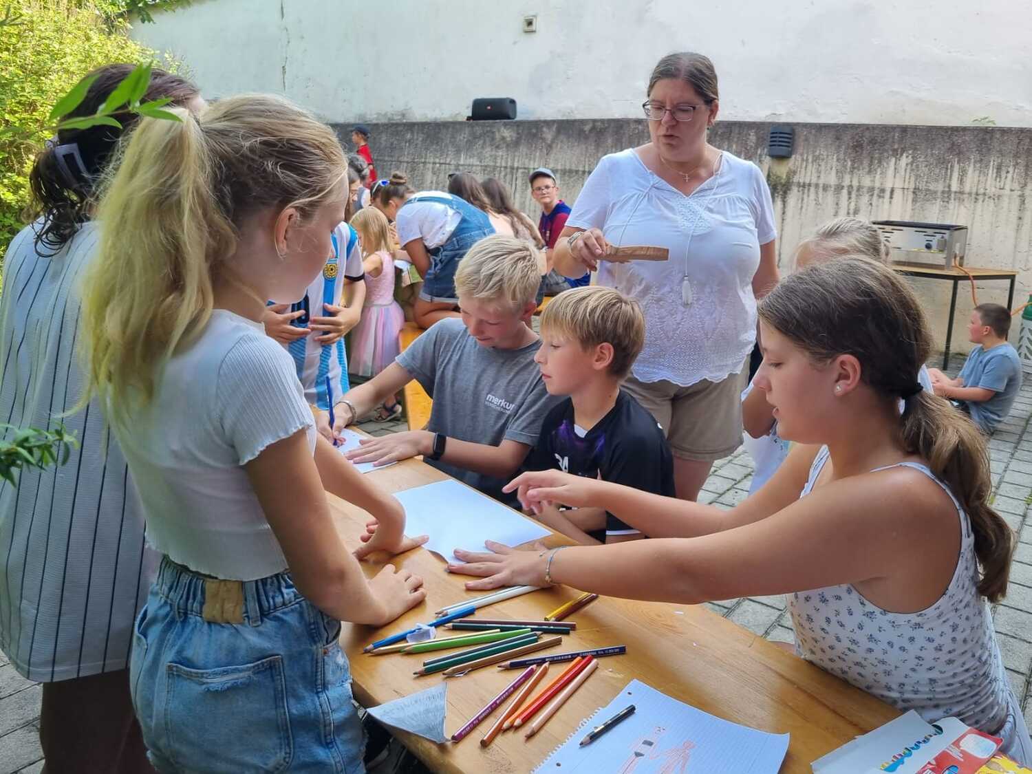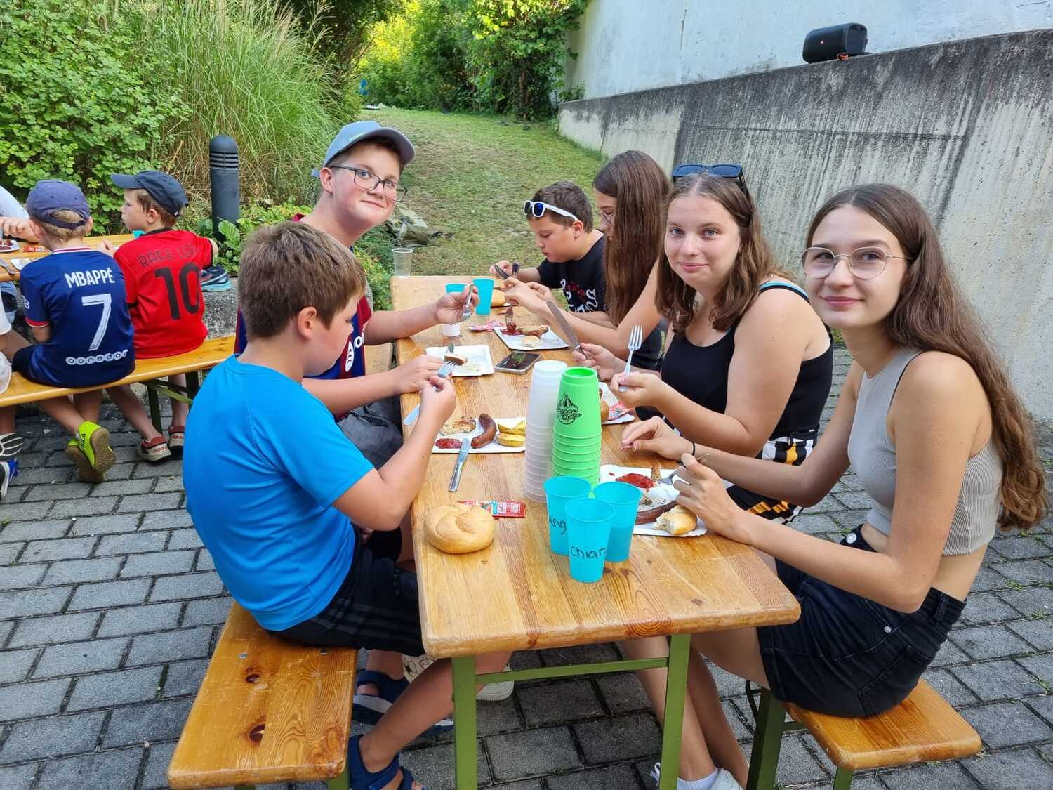Um 17 Uhr trafen wir uns zu einer gemeinsamen Andacht im Pfarrsaal, wo wir zusammen unser Abendgebet sprachen. Anschließend wurde im Hof gegrillt und wir konnten beim gemeinsamen Abendessen den Tag ausklingen lassen.