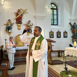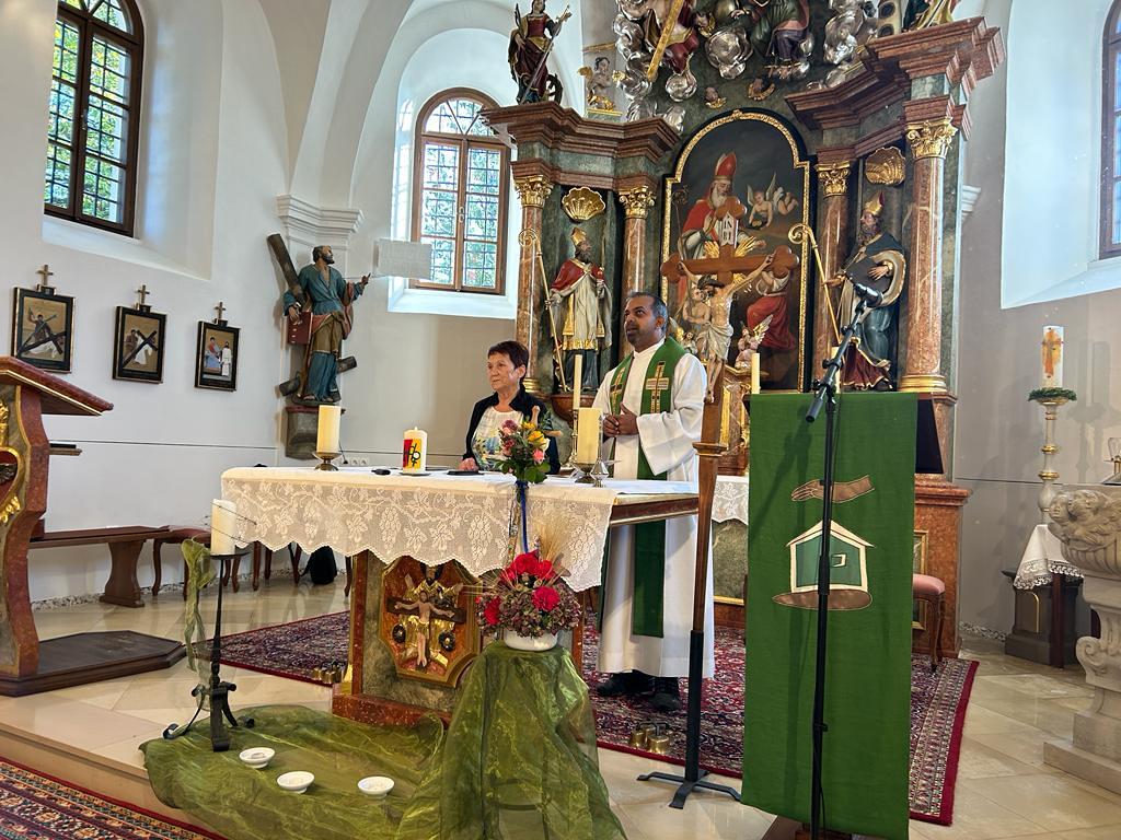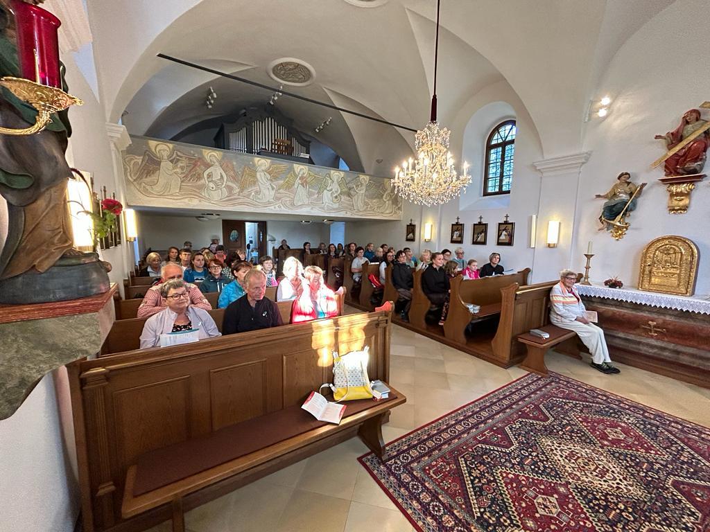 Bei der 1. Station ein Marterl mit einer Pietastatue wurden meditative Gedanken und Gebete gelesen und ein Marienlied gesungen. Danach ging es weiter Richtung Lindgraben zum Ökumenischen Kreuz. Bei zwei weiteren Stationen war Zeit zum Innehalten. Angeleitet durch meditative Texte, Gesprächsanregungen bzw. auch in Stille nachzudenken ging es weiter bis zur Florianikapelle.