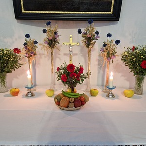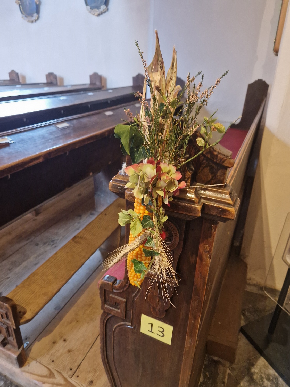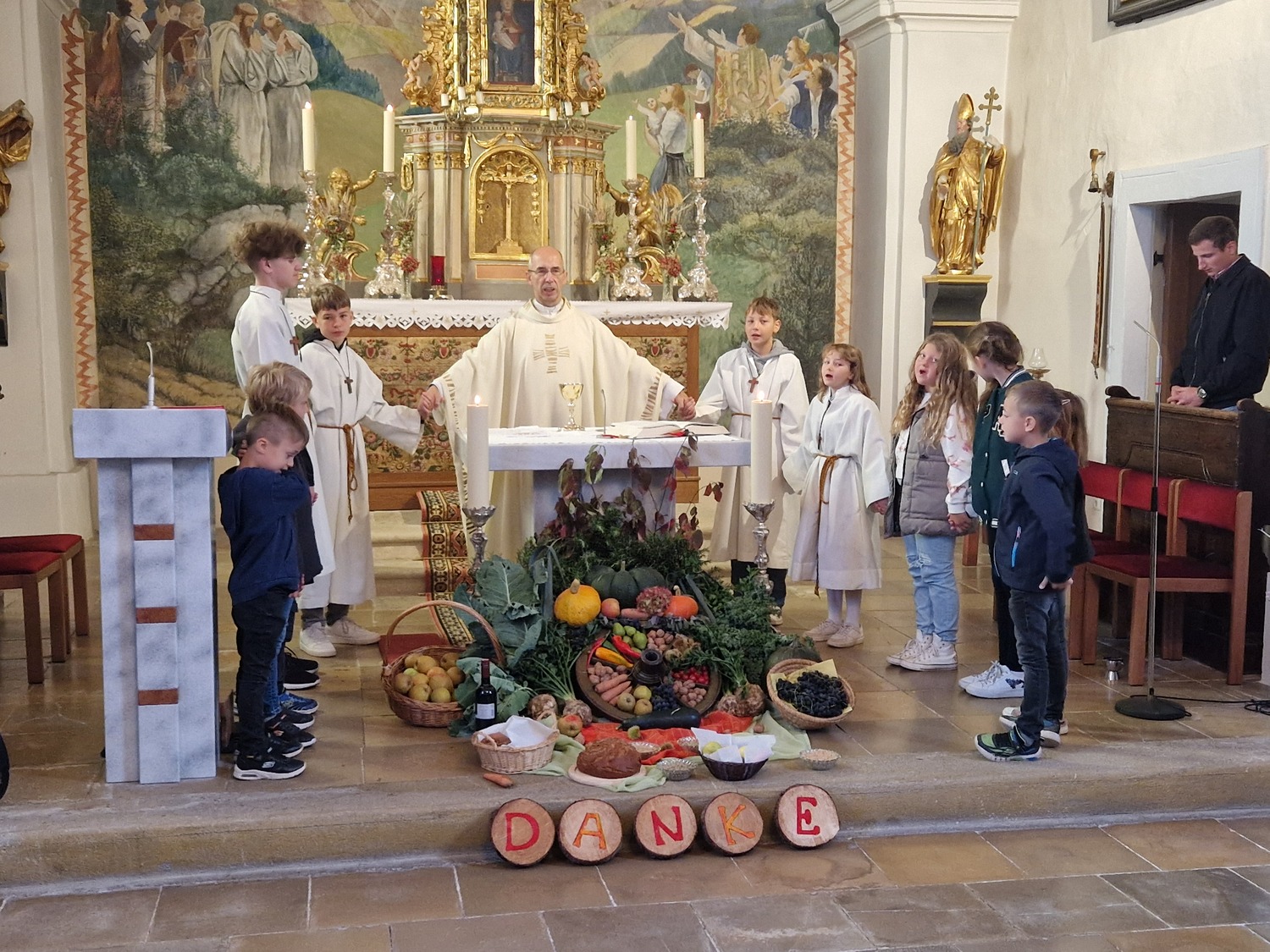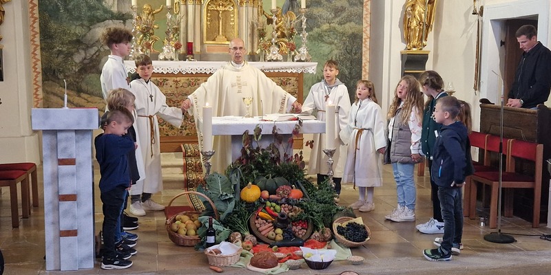 Aus Dankbarkeit feierten wir wieder das Erntedankfest. Pfarrer Gregor erzählte von den Sonnenblumen. Die Kinder und Sänger/innen gestalteten die Eucharistiefeier mit. Anschließend fand die Agape diesmal bei kühlem Wetter im Pfarrhof statt.