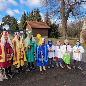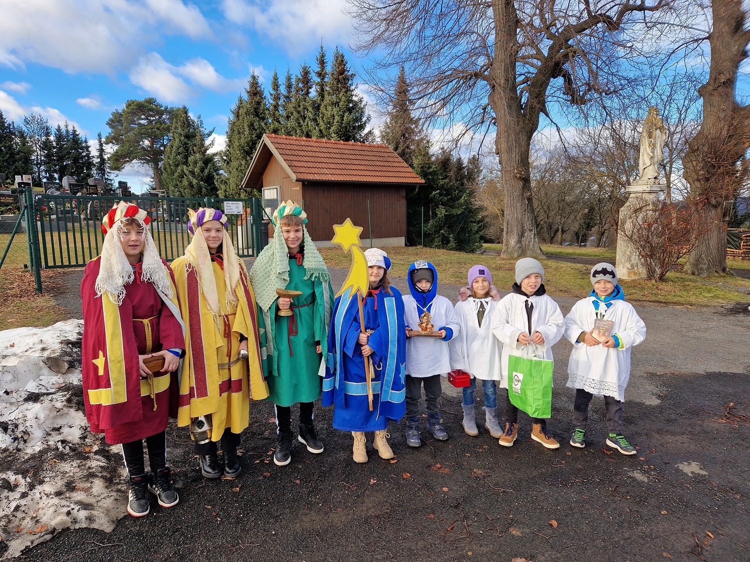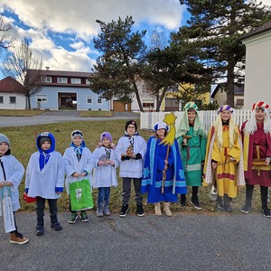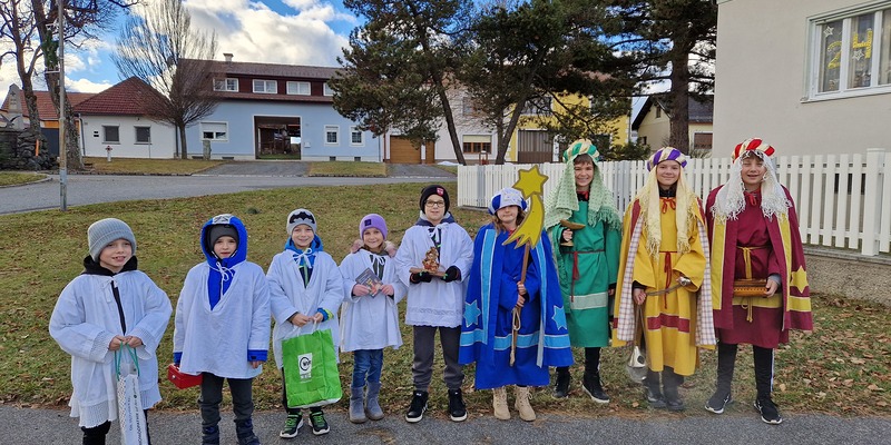 Die Ministranten und heurigen Erstkommunion-Kinder setzten ein Zeichen - für eine gerechte Welt. Bei angenehmen Temperaturen besuchten sie die Häuser in Landsee und Blumau um Spenden für die Dreikönigsaktion zu sammeln.
