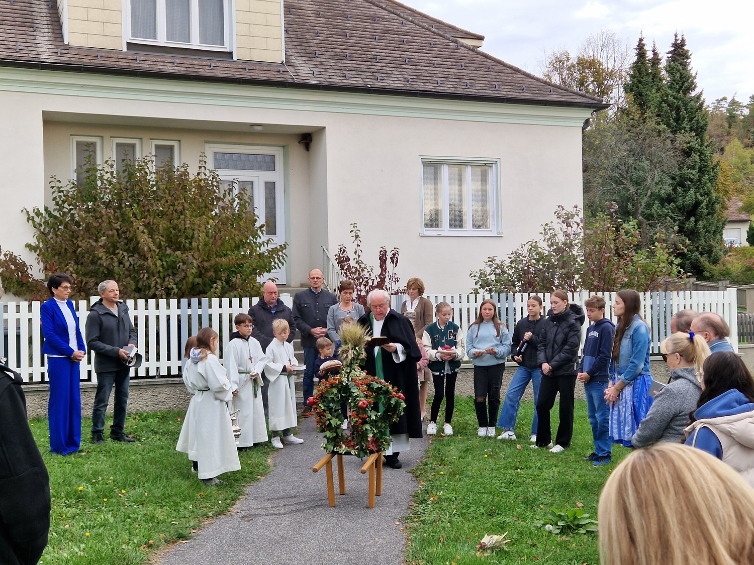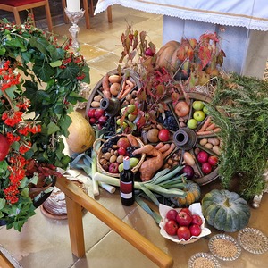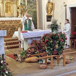 Für die Erntedankfeier wurde die Kirche mit viel Obst und Gemüse geschmückt. Beim feierlichen Einzug mit Erntekrone und Gaben hatten die Kinder und Firmlinge alle Hände voll zu tun. Nach der Eucharistiefeier konnten bei der Agape nette Gespräche geführt werden.