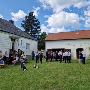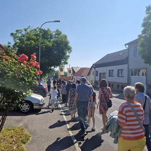 Bei sommerlichen Temperaturen fand nach der Heiligen Messe die Fronleichnamsprozession statt. Die Monstranz wurde durch die Ortschaft getragen und bei zwei Stationen spendete Pfarrer Basil den Eucharistischen Segen.